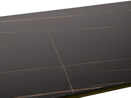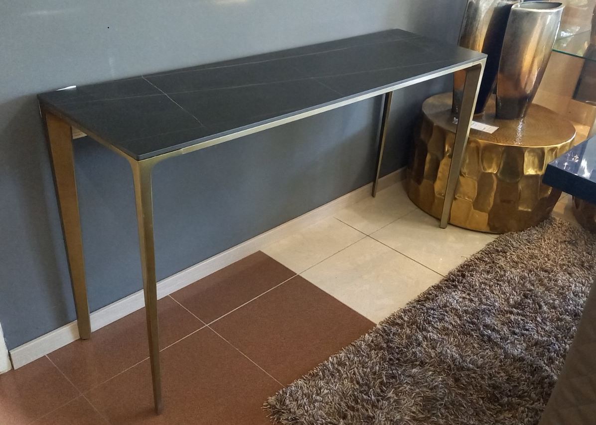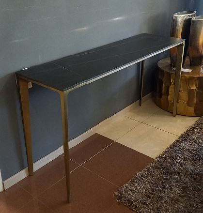 Modern konzolasztal matt márványlappal és rusztikus réz talppal, 140x40x75 cm HT209