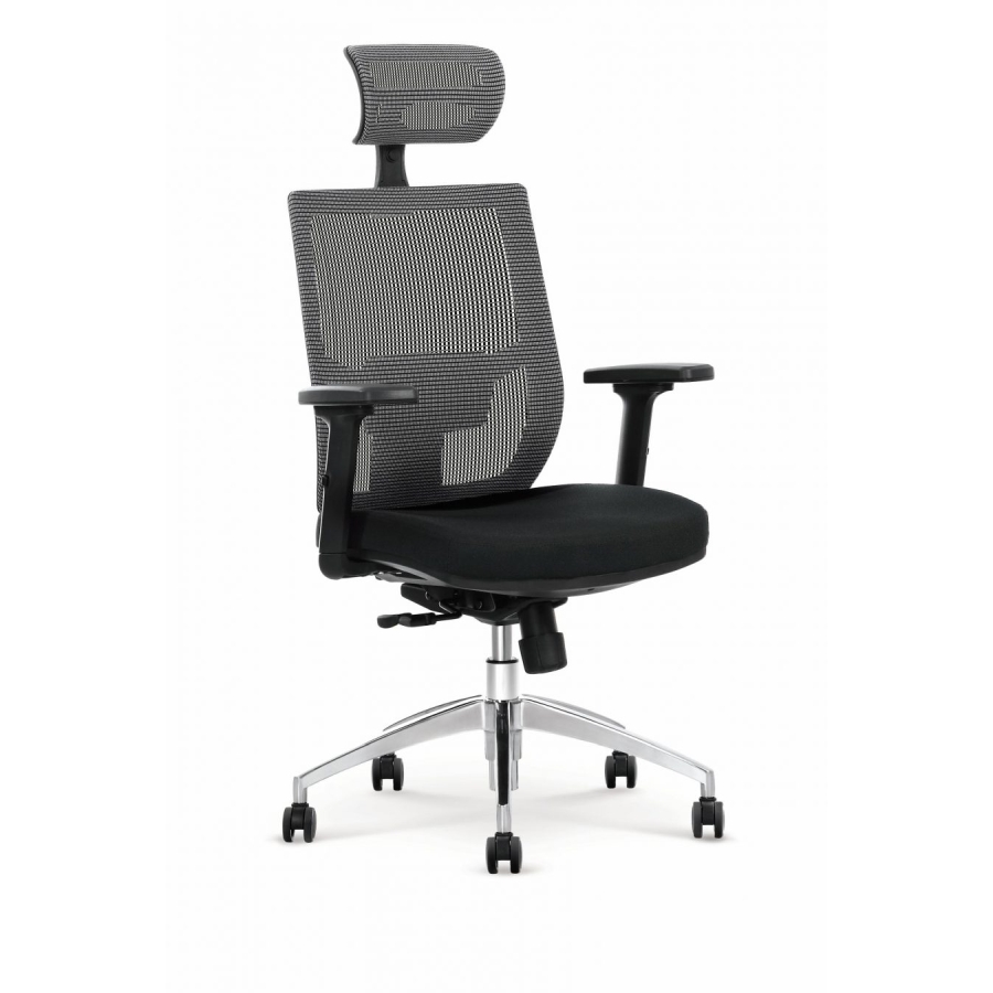 Magas háttámlával rendelkező főnöki forgószék kényelmes kialakítással, csúsztatható ülőfelülettel, jól szellőző és rugalmas mesh kárpitozással, állítható karfával és fejtámlával. A beépített multiblock mechanikának köszönhetően a forgószék magassága állítható, a háttámla és az ülés együtt, szabadon dönthető, és ez a pozíció több pontban rögzíthető, a rugóerő pedig a testsúlyhoz igazítható.