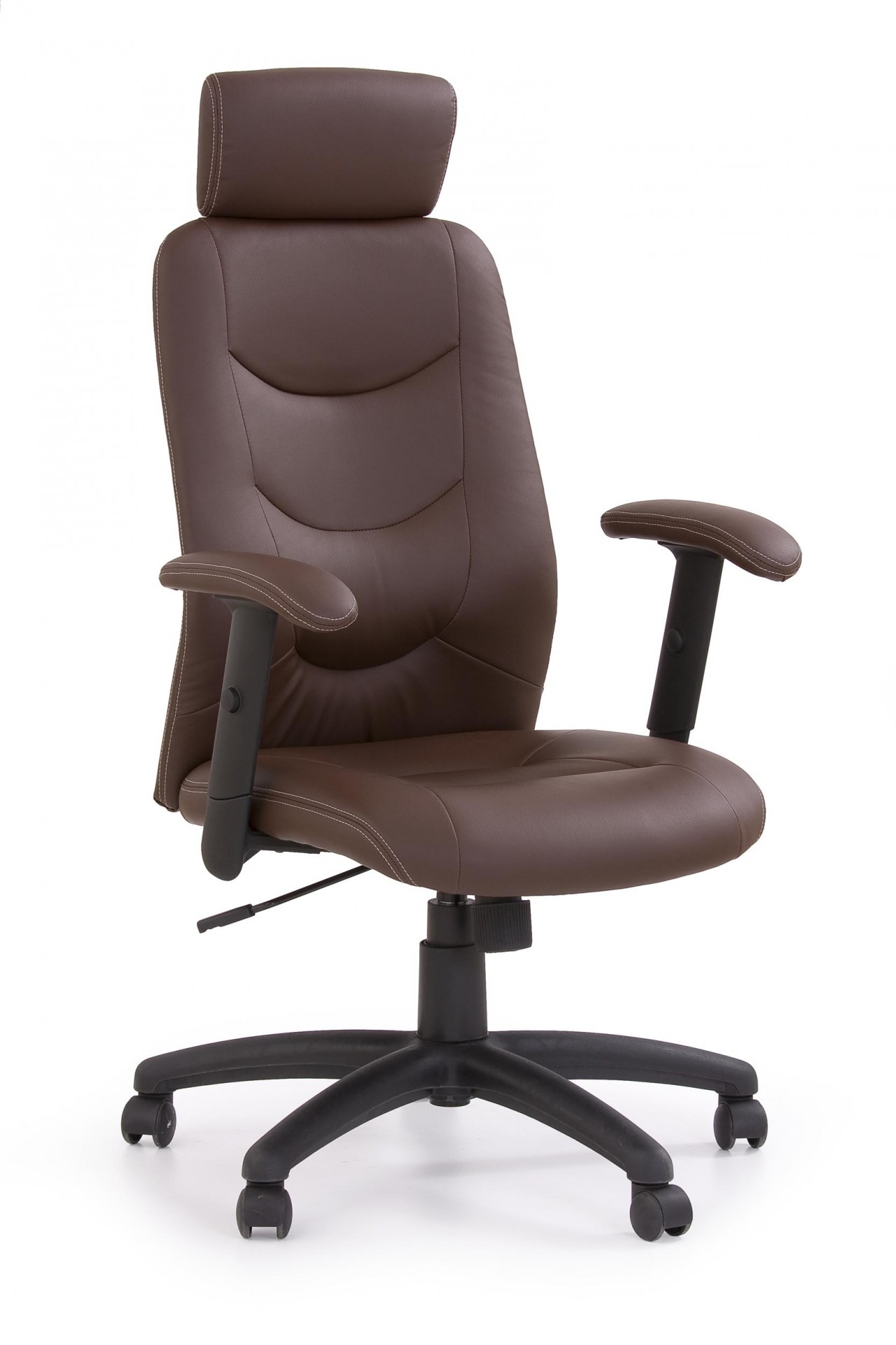 Magas háttámlával rendelkező főnöki forgószék beépített deréktámasszal, kényelmes kialakítással, vastagon párnázott ülőfelülettel, karfával. A beépített hintamechanikának köszönhetően a forgószék magassága állítható, a rugóerő a testsúlyhoz igazítható, és a szék munkapozícióban rögzíthető.