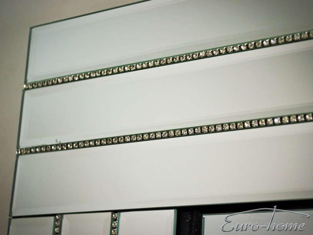 Elegáns design fali tükör apró kristályokkal díszített kerettel, többféle méretben. Függőlegesen és vízszintesen is elhelyezhető.