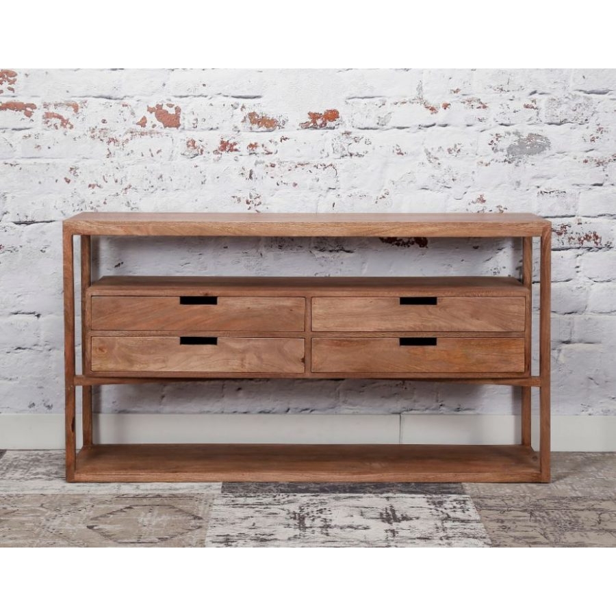 Modern, mangó fából készült komód négy fiókkal.