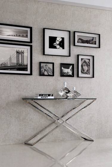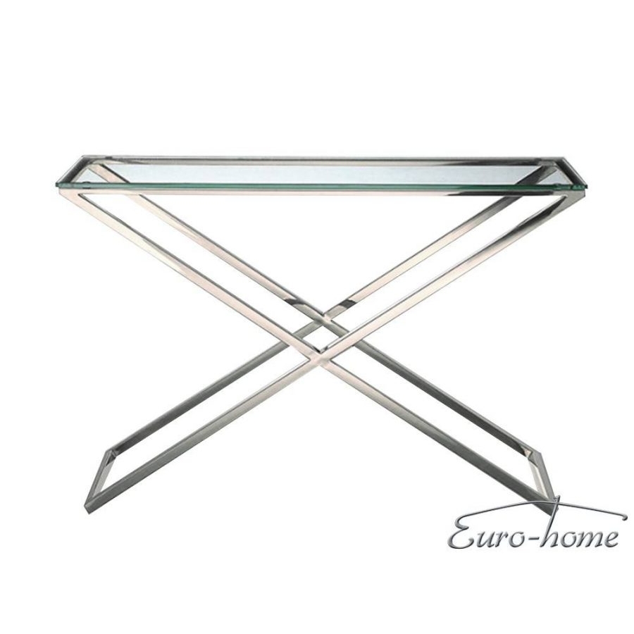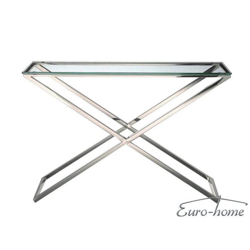 Elegáns konzolasztal krómacél vázzal, üveglappal.