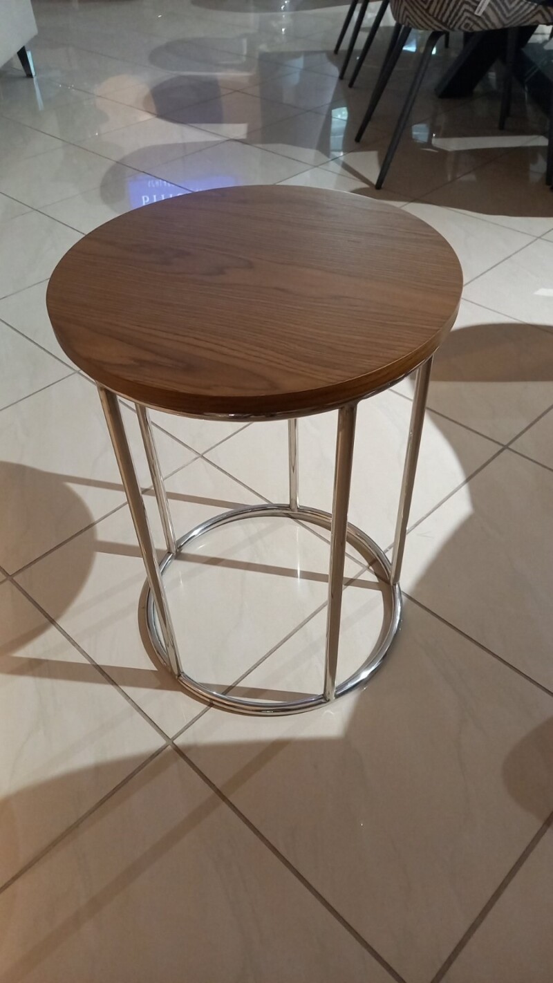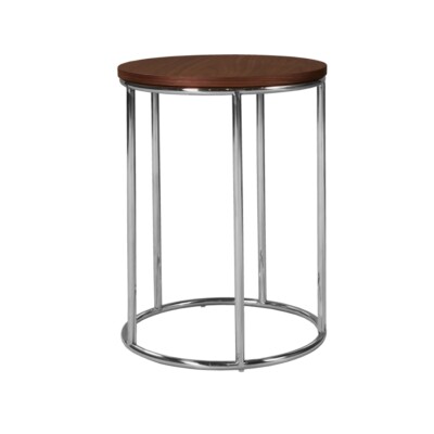Elegáns lerakóasztal dió színű asztallappal, krómacél lábazattal., ideális nappaliban kisasztalként, kanapé vagy fotel mellé oldalasztalként, kávé, könyv, vagy kisebb tárgyak elhelyezésére