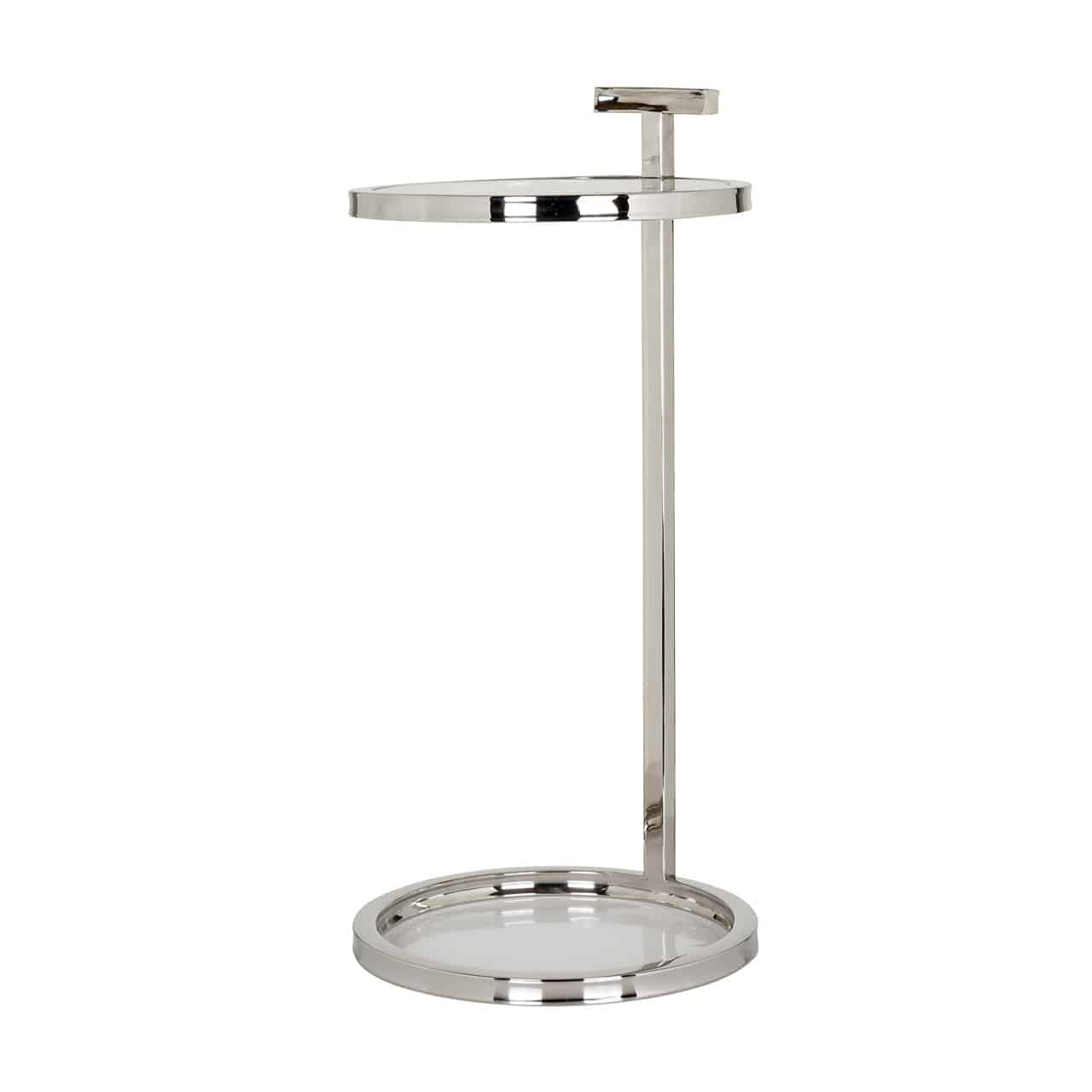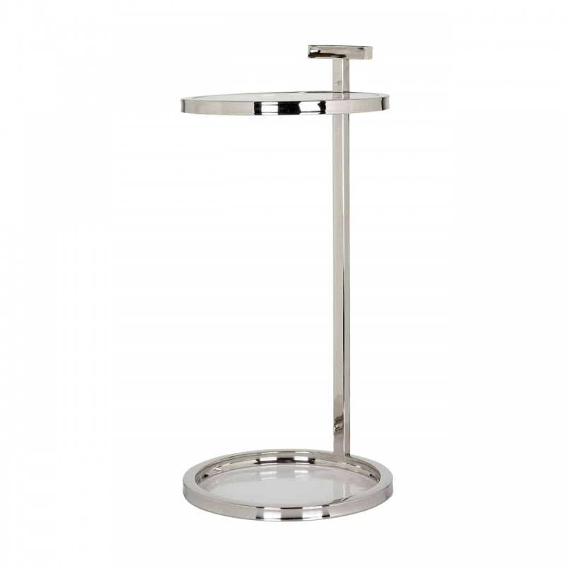 Elegáns lerakóasztal üveglappal, ezüst színű króm vázzal.