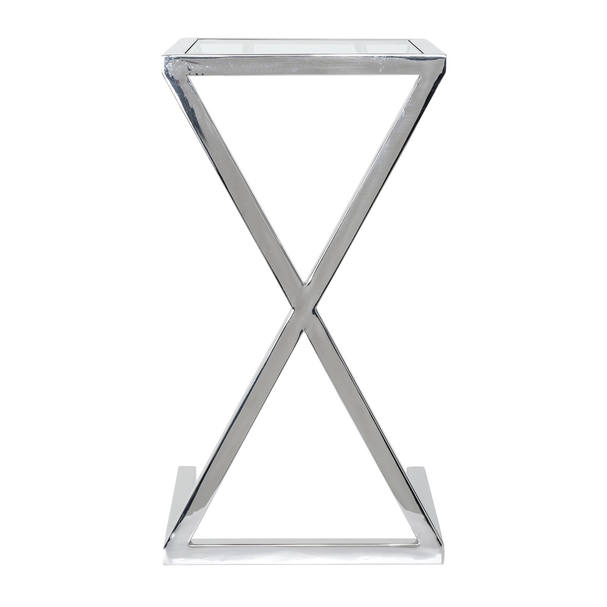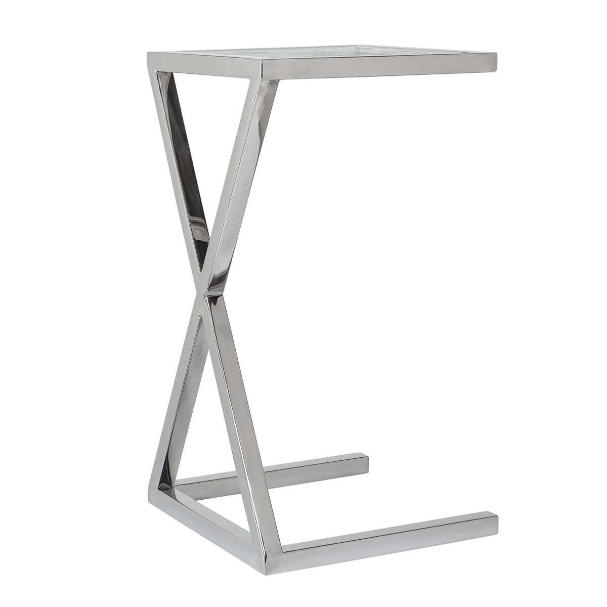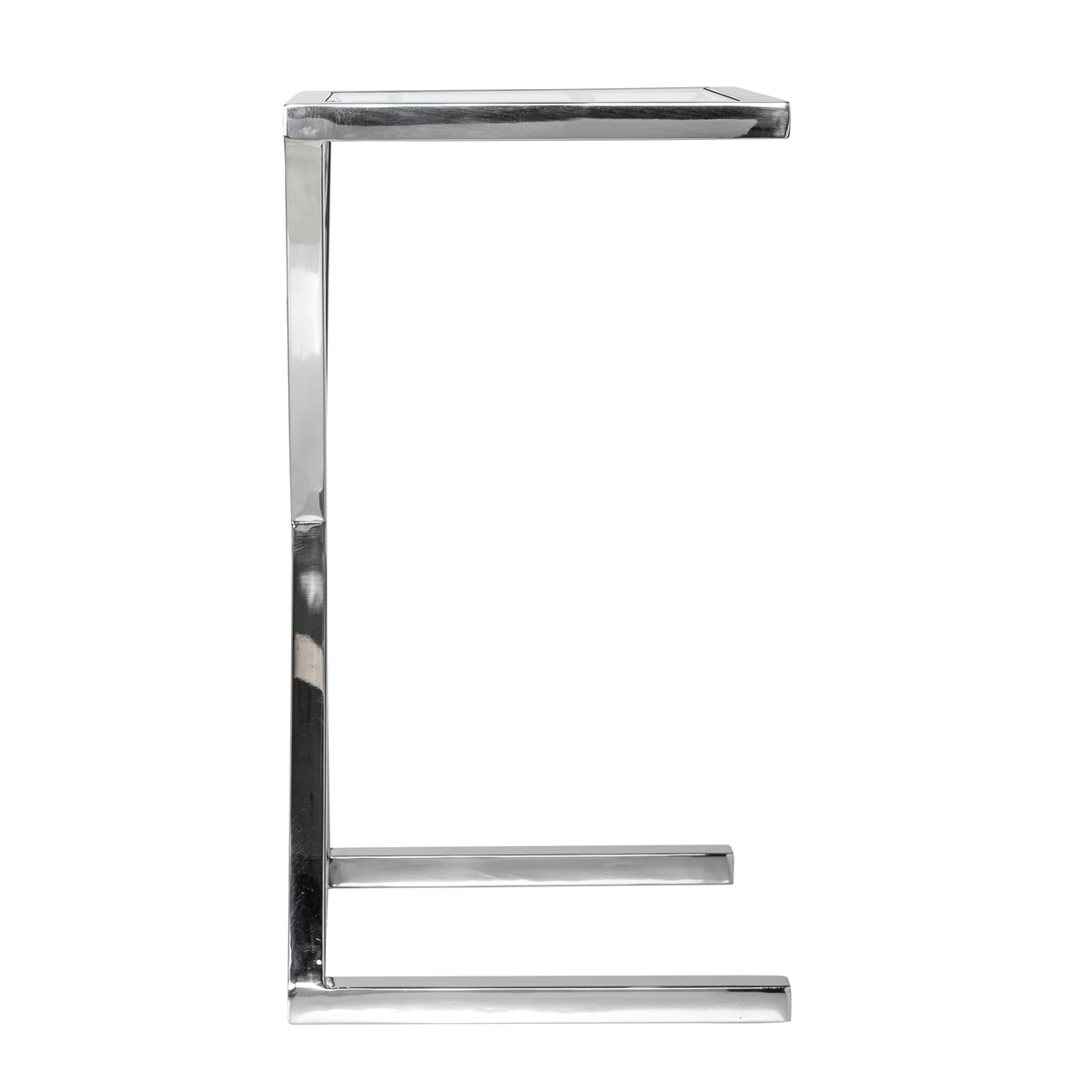 Elegáns lerakóasztal üveglappal, ezüst színű króm vázzal.