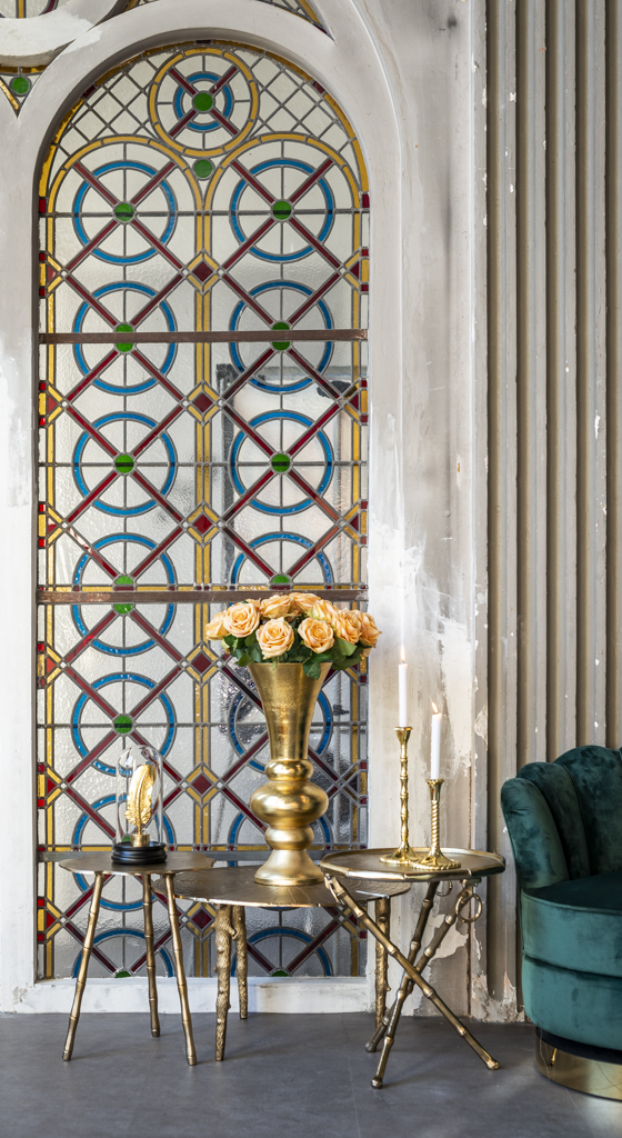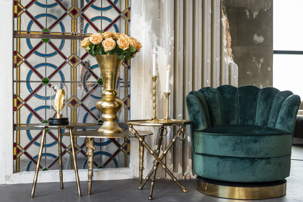 Elegáns arany színű lerakóasztal.