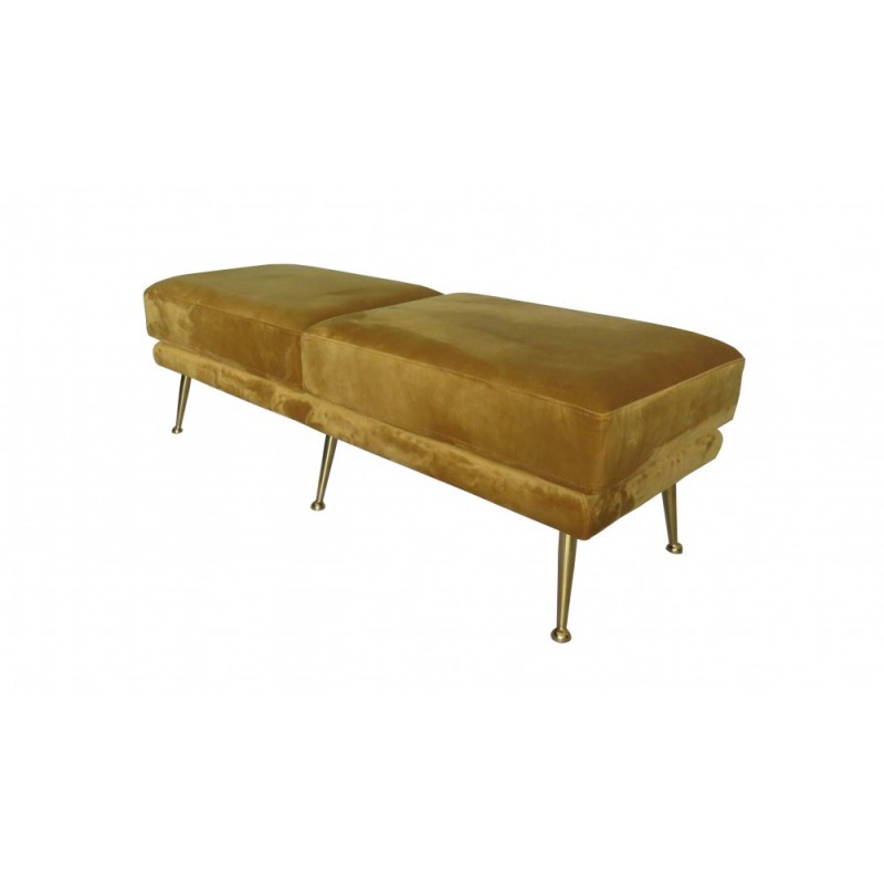 Elegáns puff trendi, mustársárga színű velvet-szövet bevonattal, arany színű lábakkal.