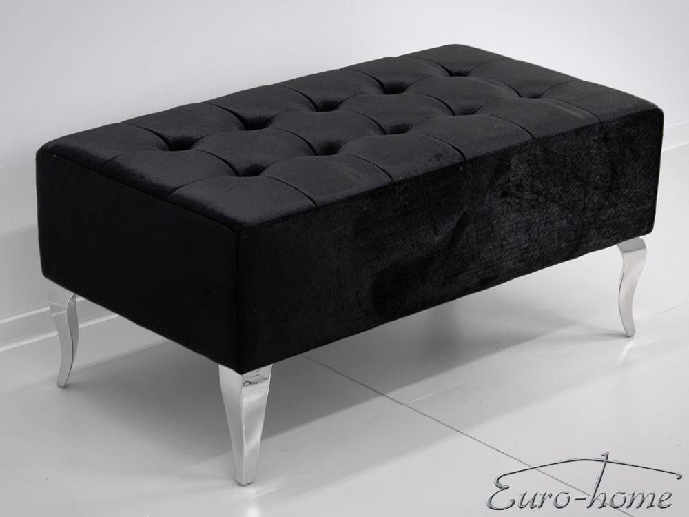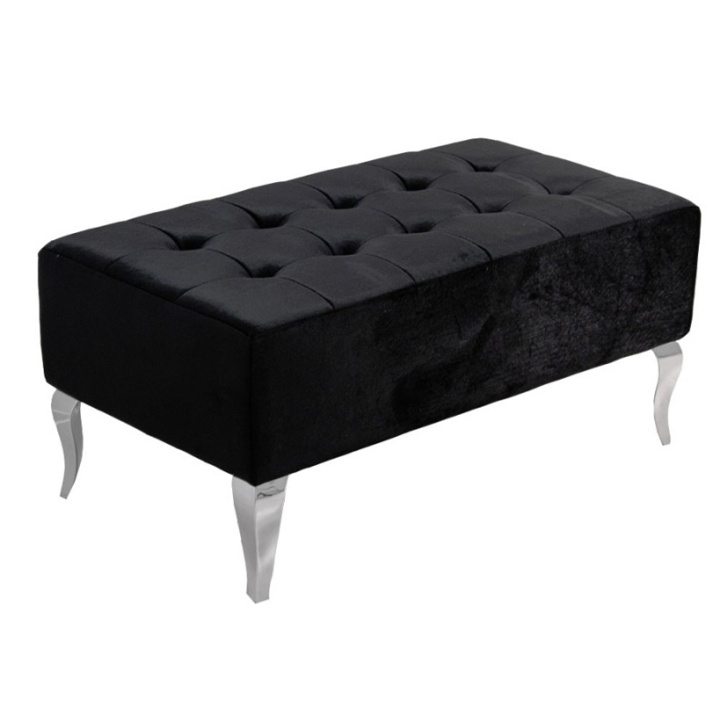 Elegáns design puff bársony borítással, csillogó strassz díszítéssel, ezüst vagy arany színű rozsdamentes acél lábakkal.