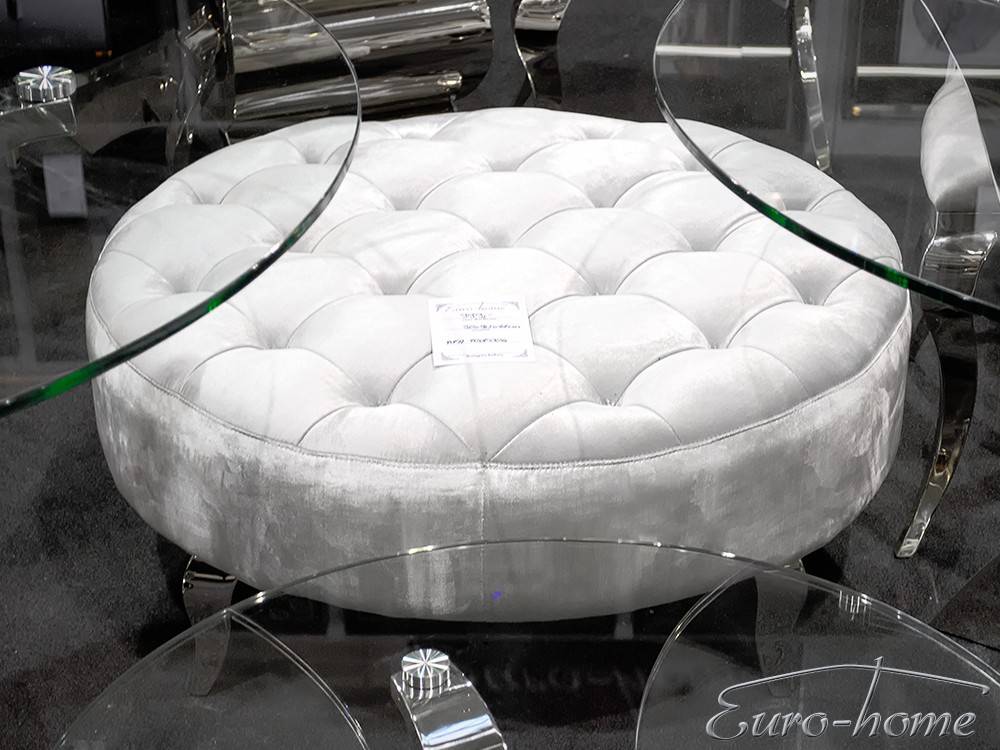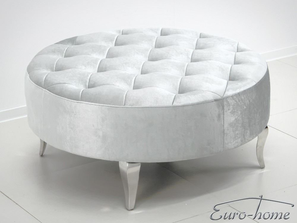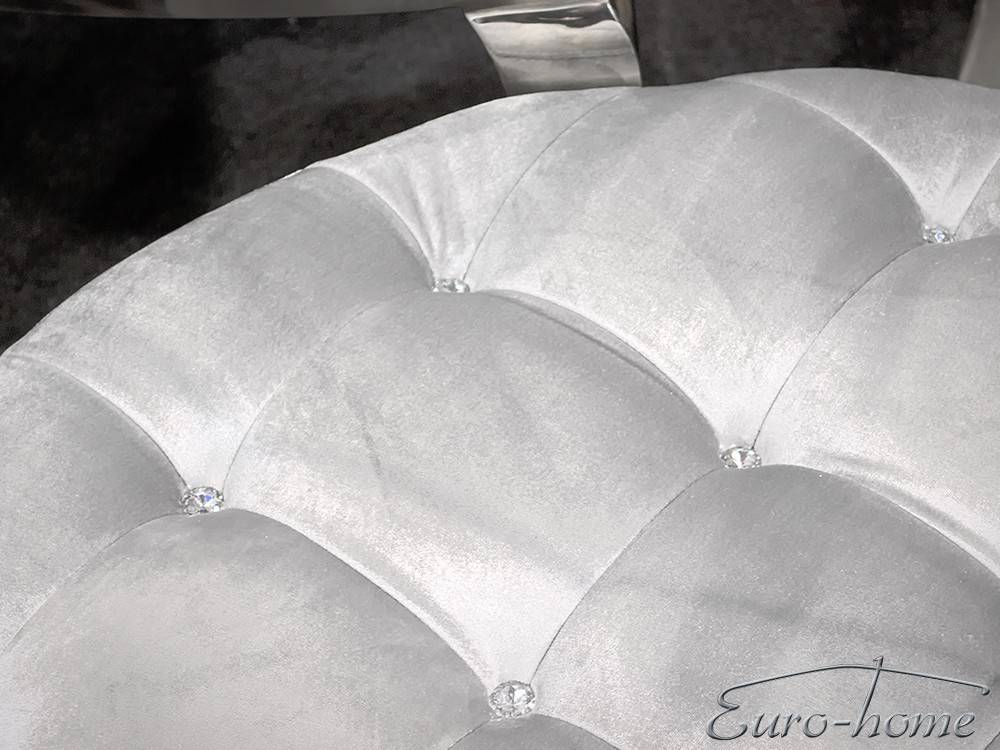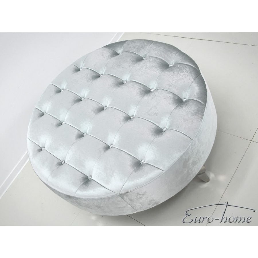 Elegáns design puff bársony borítással, csillogó strassz díszítéssel, ezüst vagy arany színű rozsdamentes acél lábakkal.