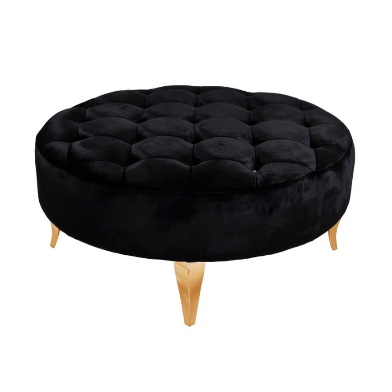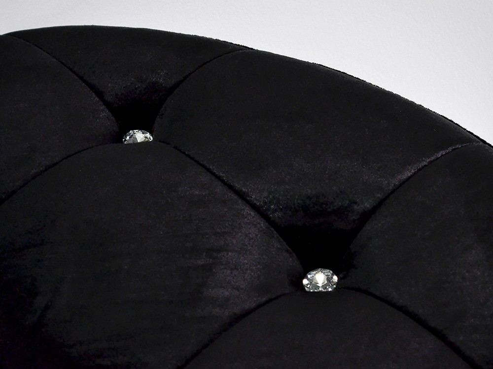 Elegáns design puff bársony borítással, csillogó strassz díszítéssel, ezüst vagy arany színű rozsdamentes acél lábakkal.