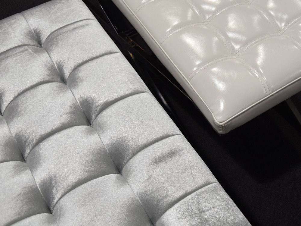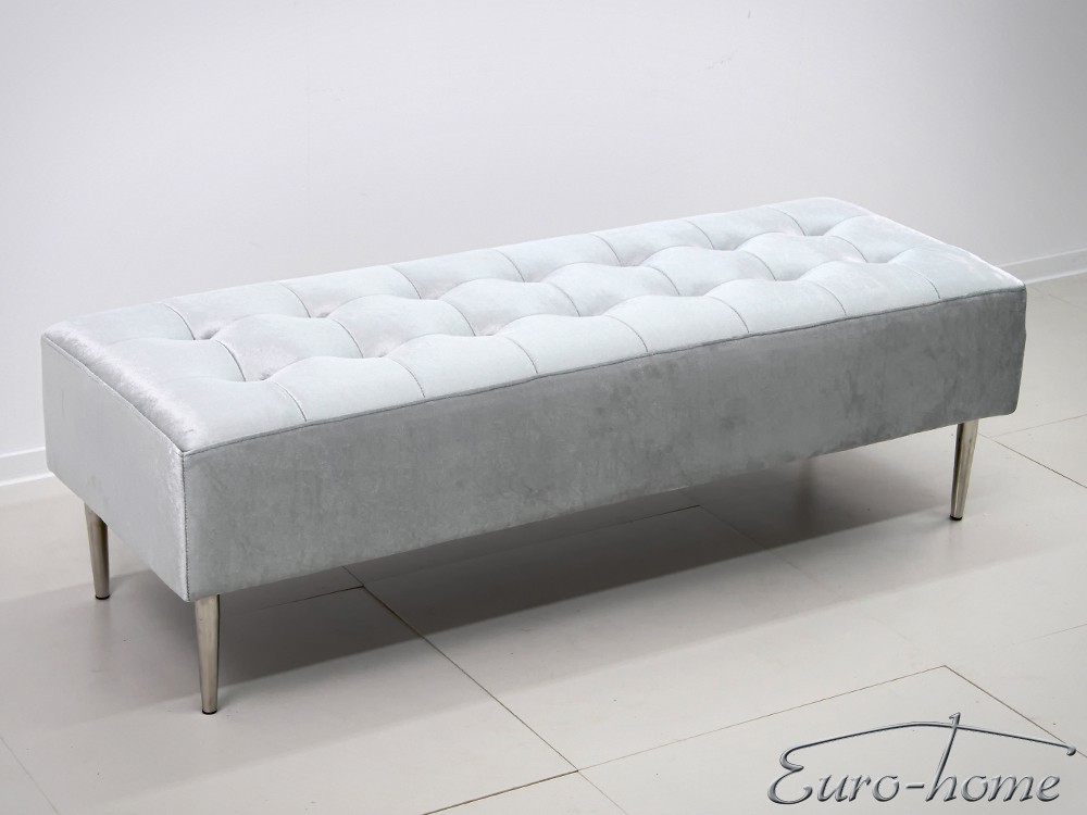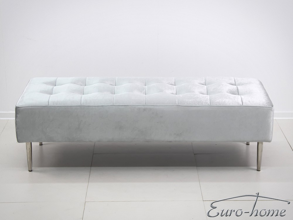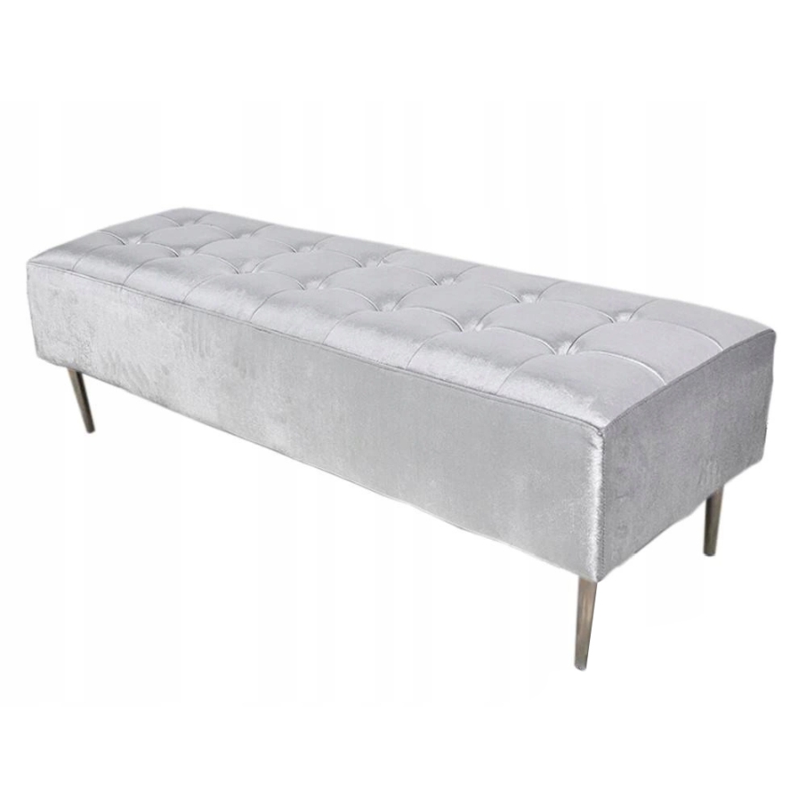 Elegáns design puff bársony borítással, ezüst színű rozsdamentes acél lábakkal.