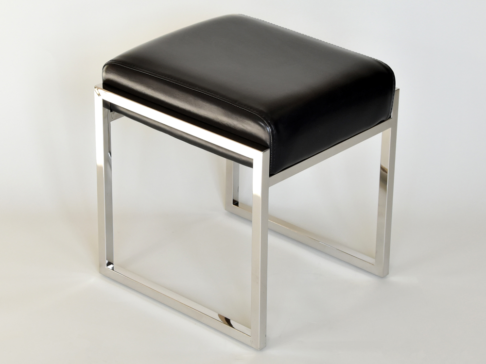 Elegáns design puff textilbőr borítással, rozsdamentes acél lábakkal.