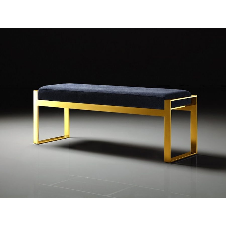 Elegáns design puff textilbőr borítással, arany színű rozsdamentes acél lábakkal.