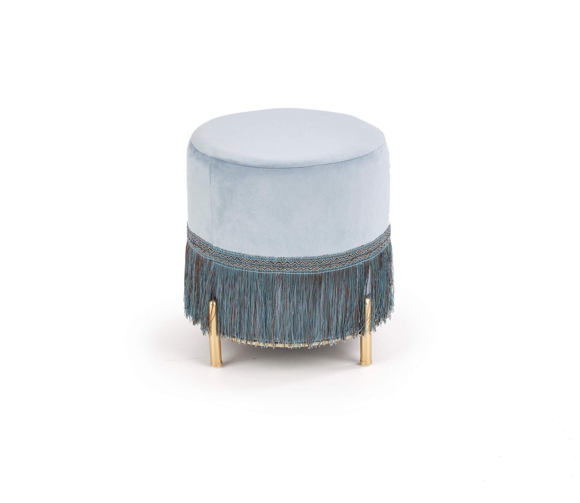 Trendi, rojtos puff arany színű krómacél lábakkal, bársony szövet bevonattal.