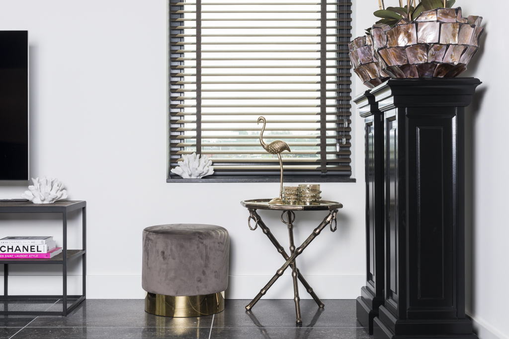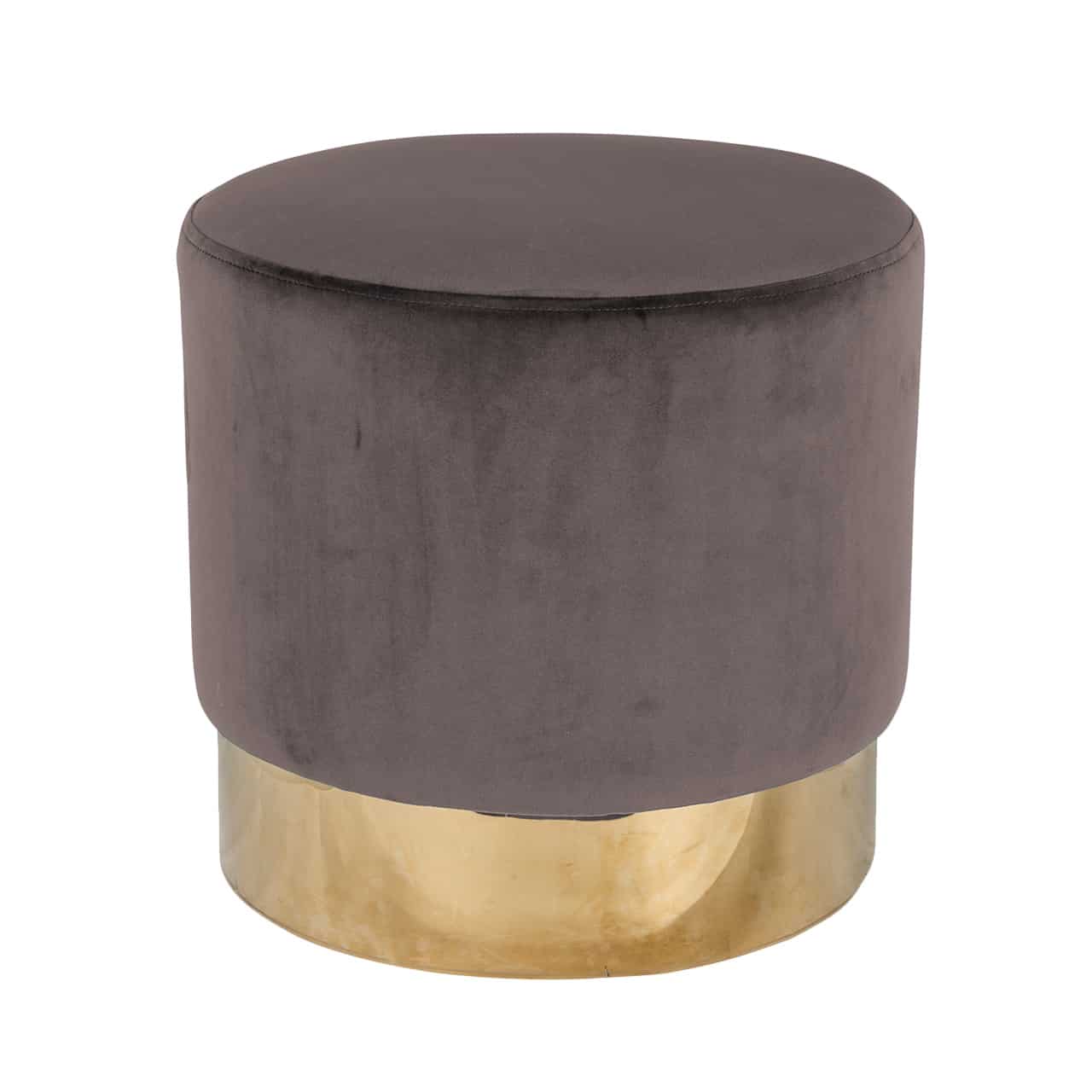 Elegáns puff trendi velvet-szövet bevonattal, arany színű krómacél lábazattal.