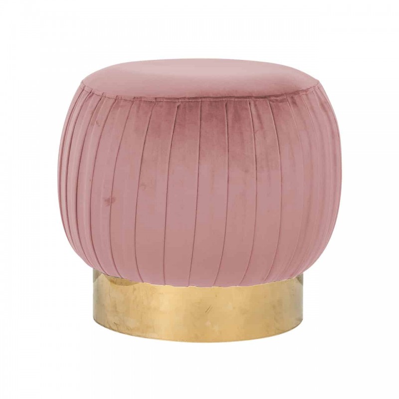 Elegáns puff trendi velvet-szövet bevonattal, arany színű krómacél lábazattal.