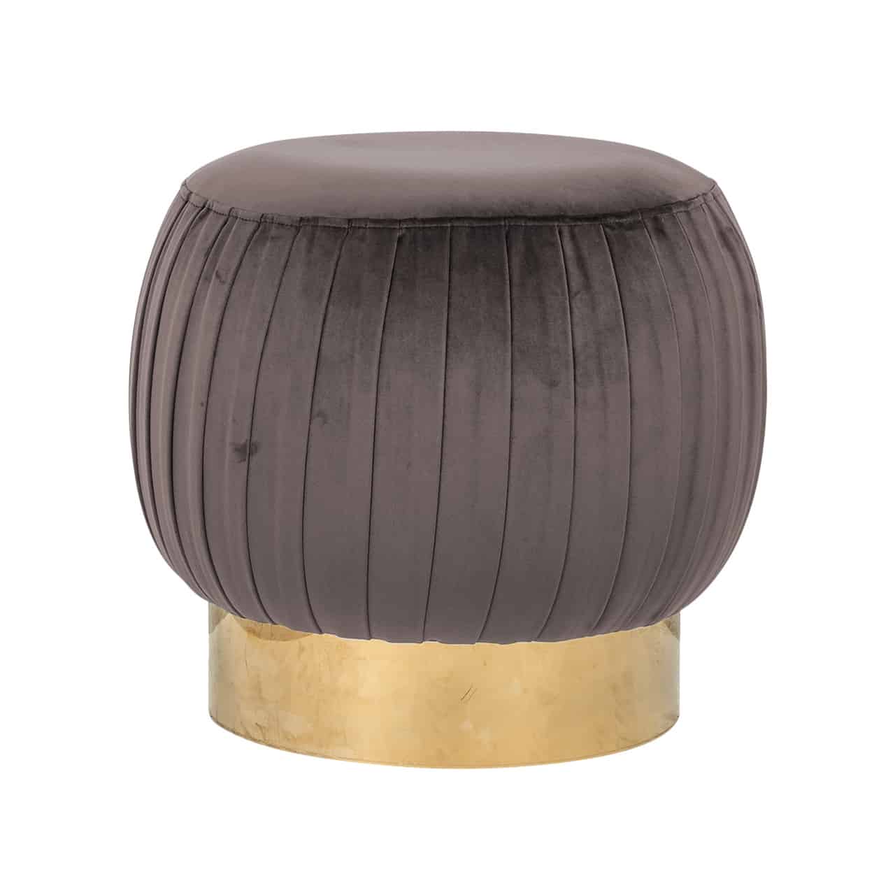 Elegáns puff trendi velvet-szövet bevonattal, arany színű krómacél lábazattal.