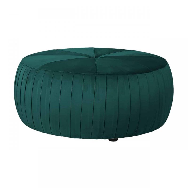 Elegáns puff trendi velvet-szövet bevonattal, fa lábakkal.