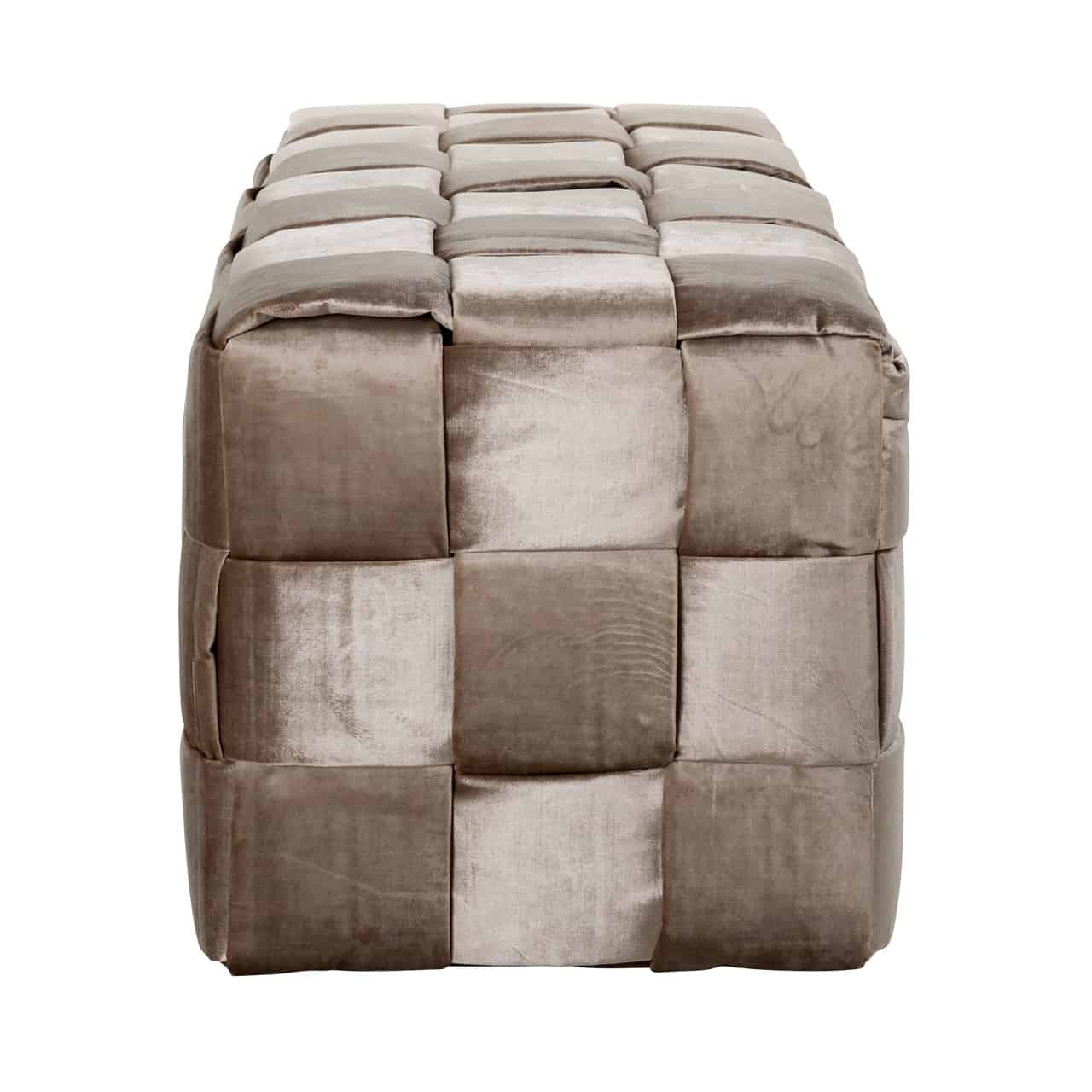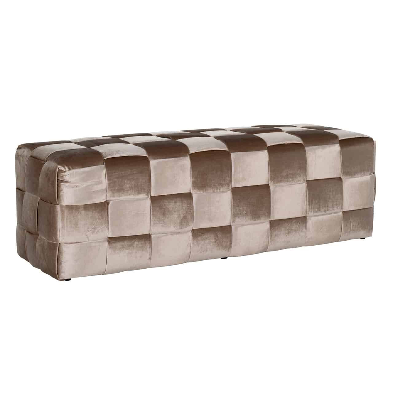 Elegáns puff trendi velvet-szövet bevonattal, fa lábakkal.