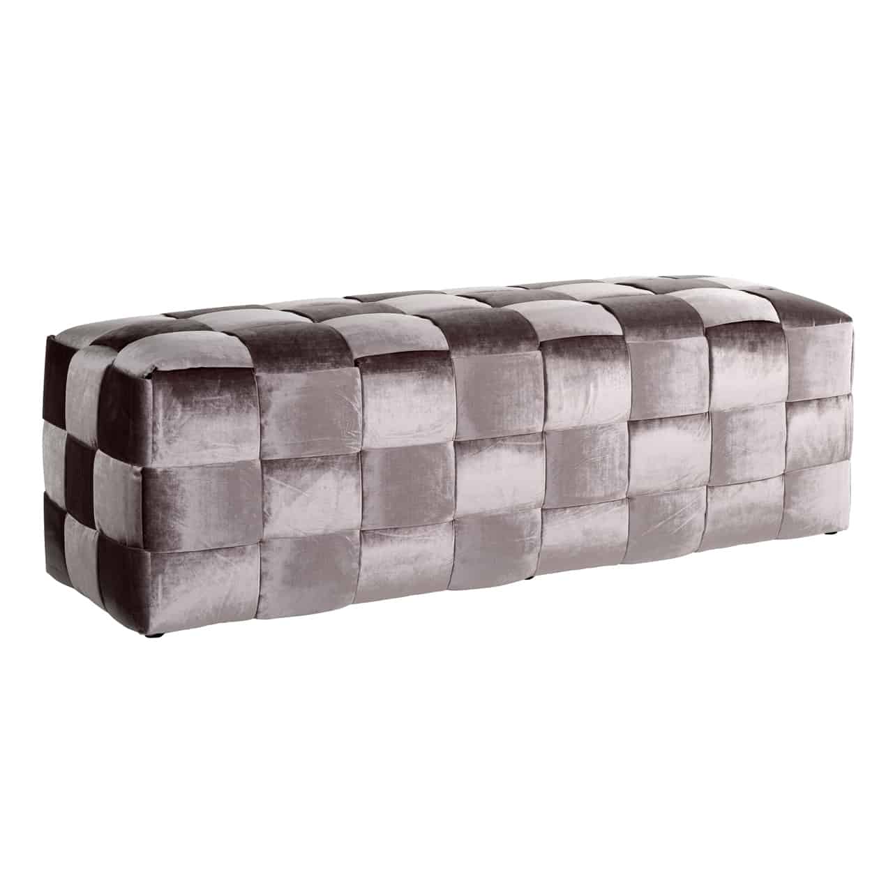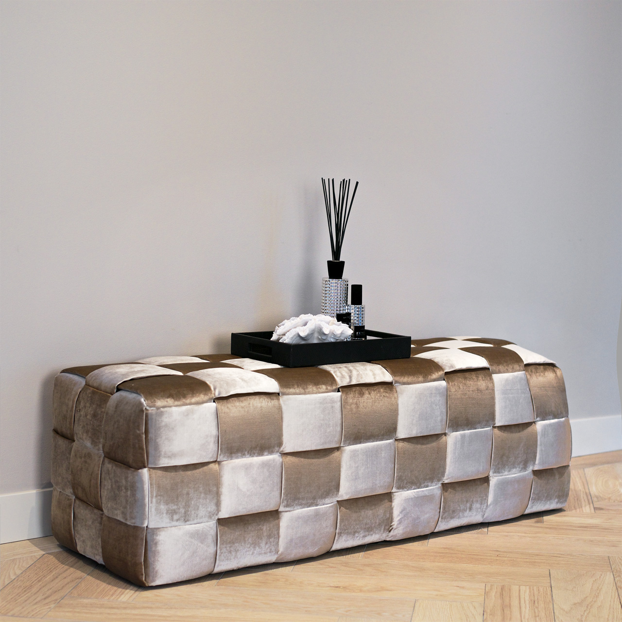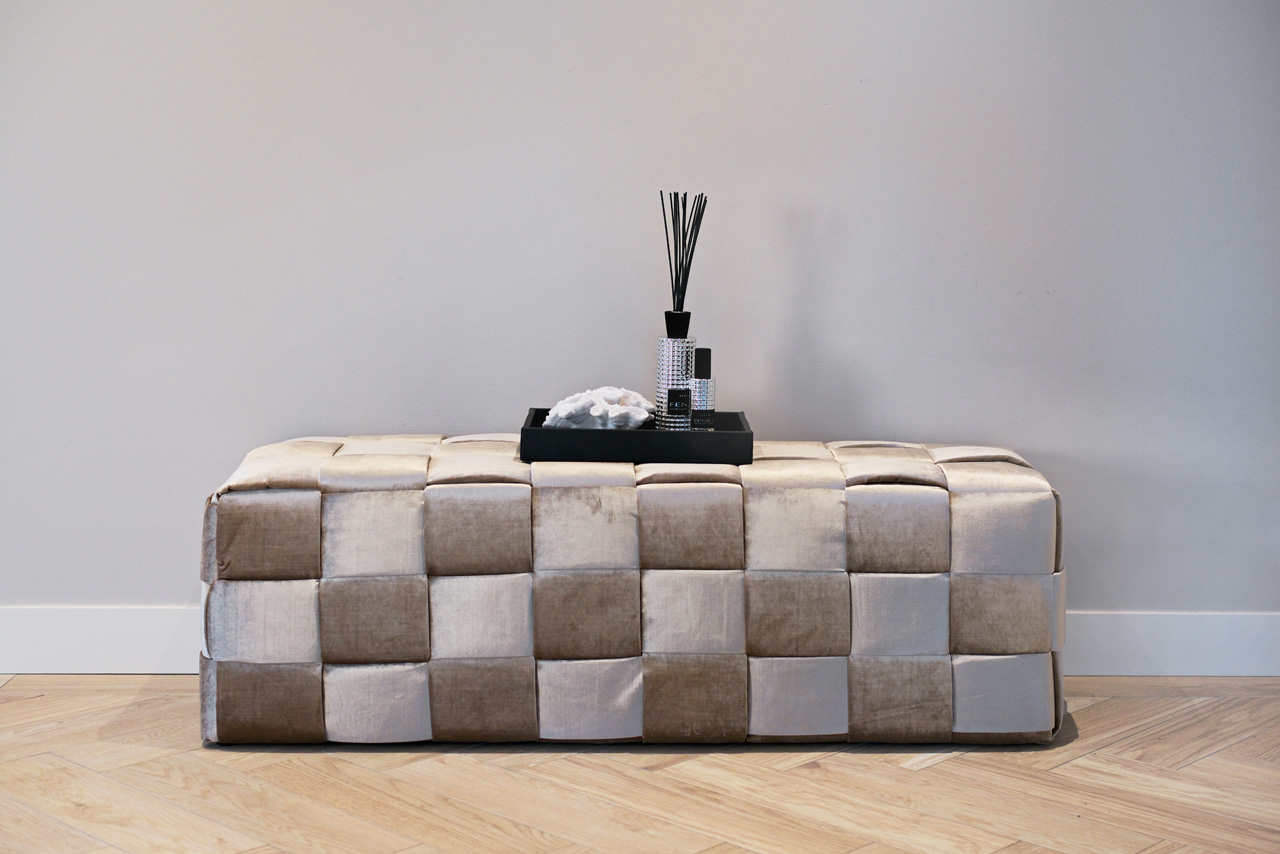 Elegáns puff trendi velvet-szövet bevonattal, fa lábakkal.