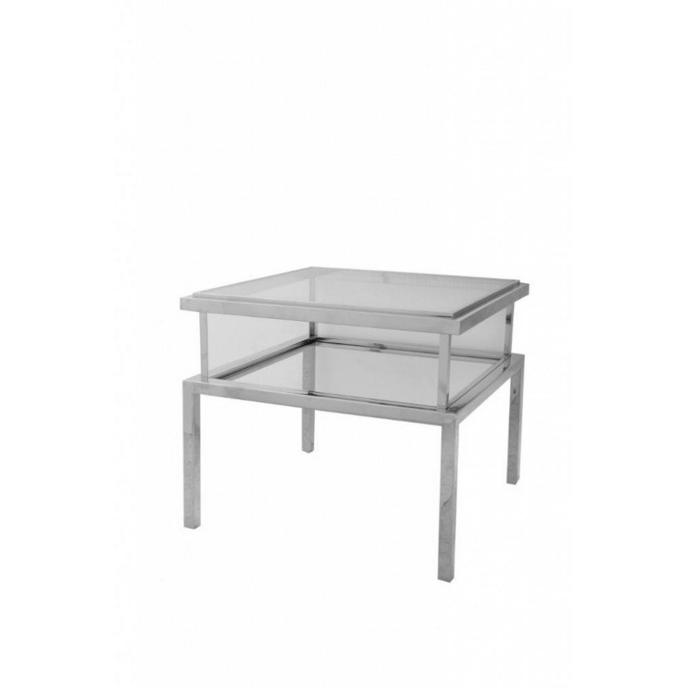 Elegáns, design dohányzóasztal arany vagy ezüst színű vázzal, átlátszó üveglapokkal.