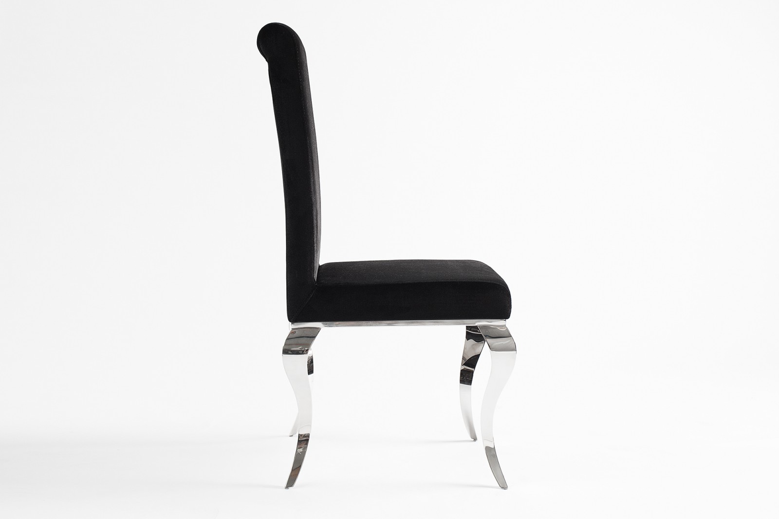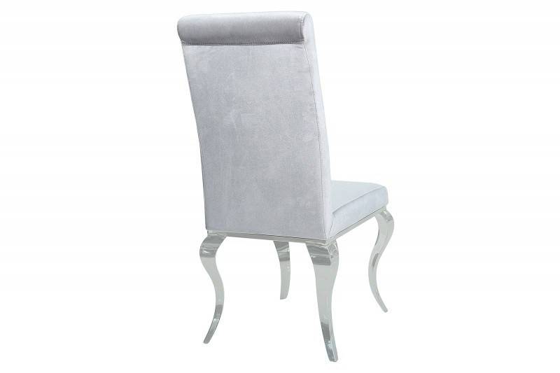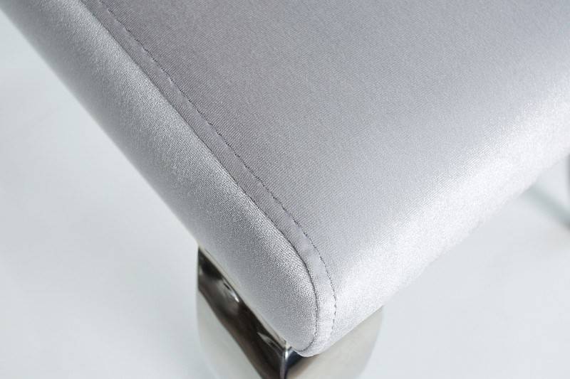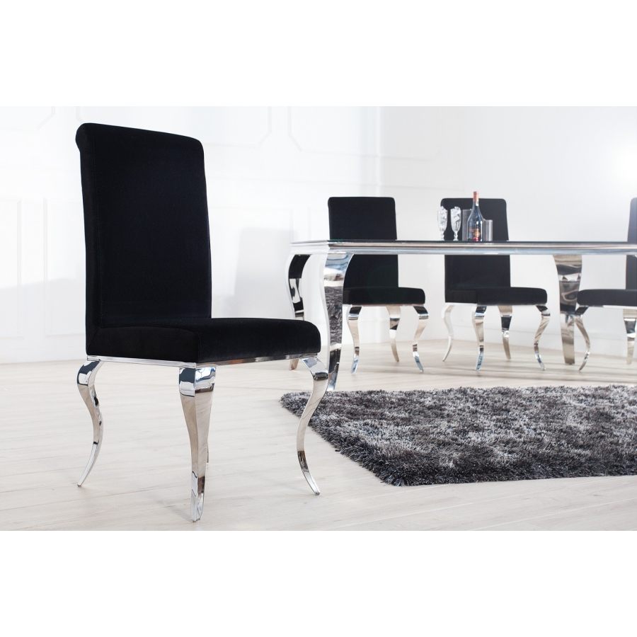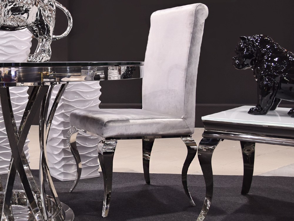 Elegáns étkezőszék bársony szövet bevonattal, kecses, ívelt krómacél lábakkal.
