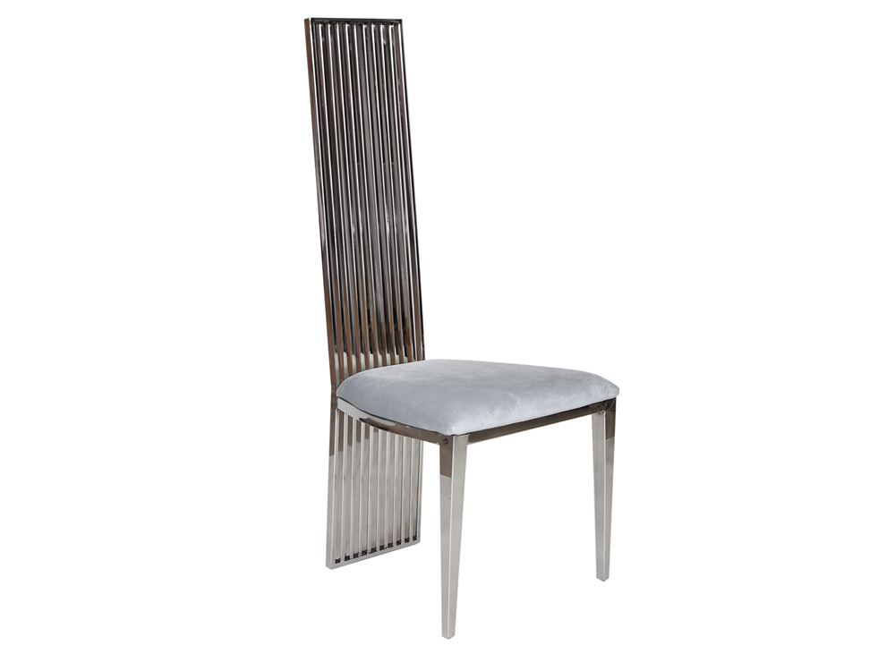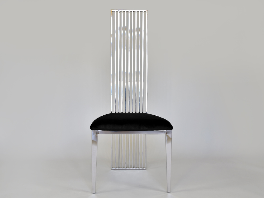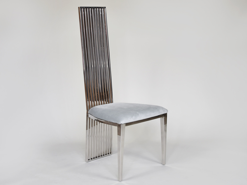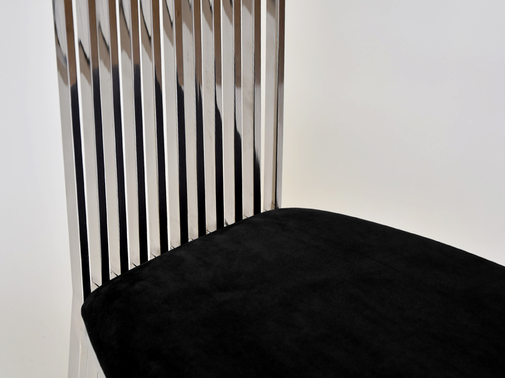 Elegáns velúr borítású szék krómozott acél vázzal, ezüst vagy fekete színben.