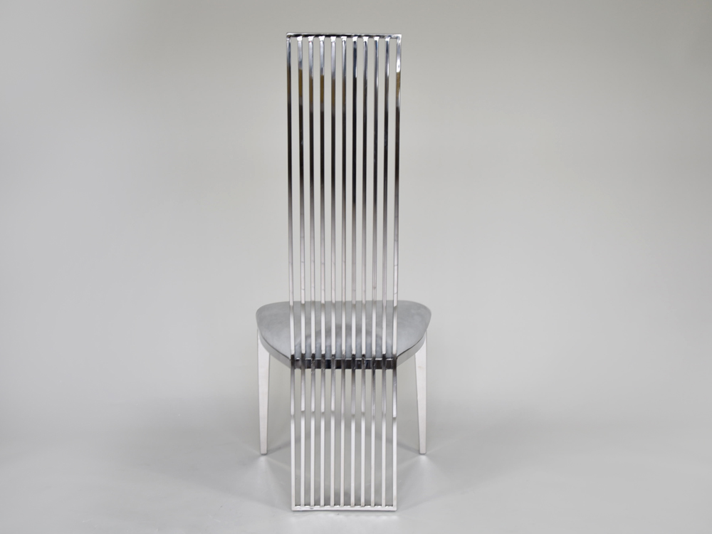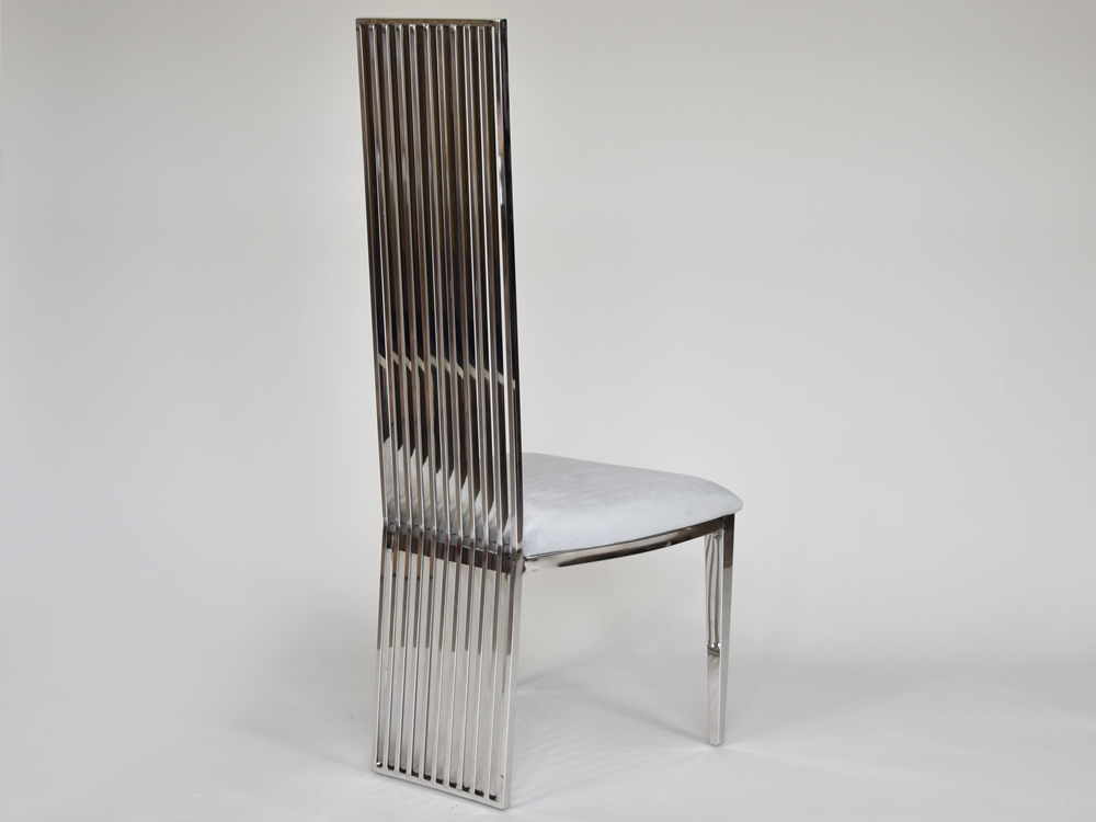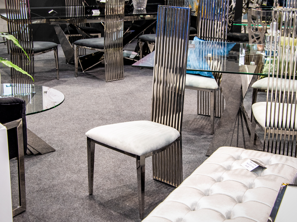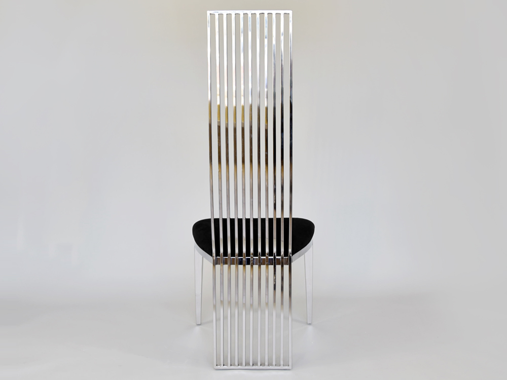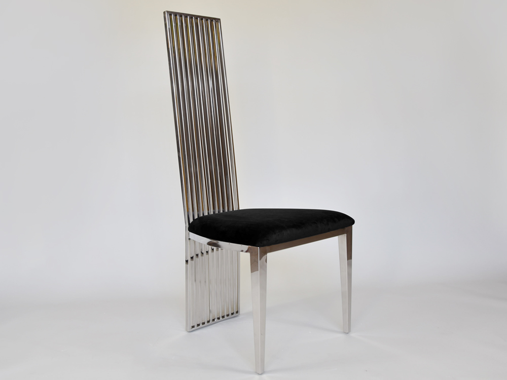 Elegáns velúr borítású szék krómozott acél vázzal, ezüst vagy fekete színben.