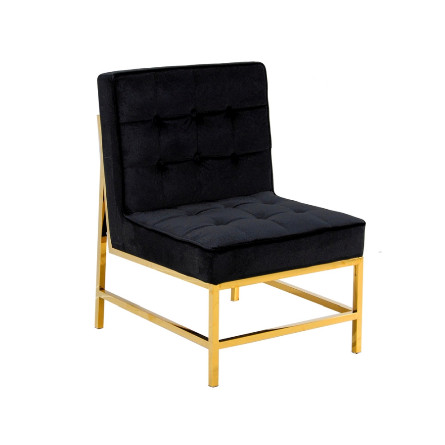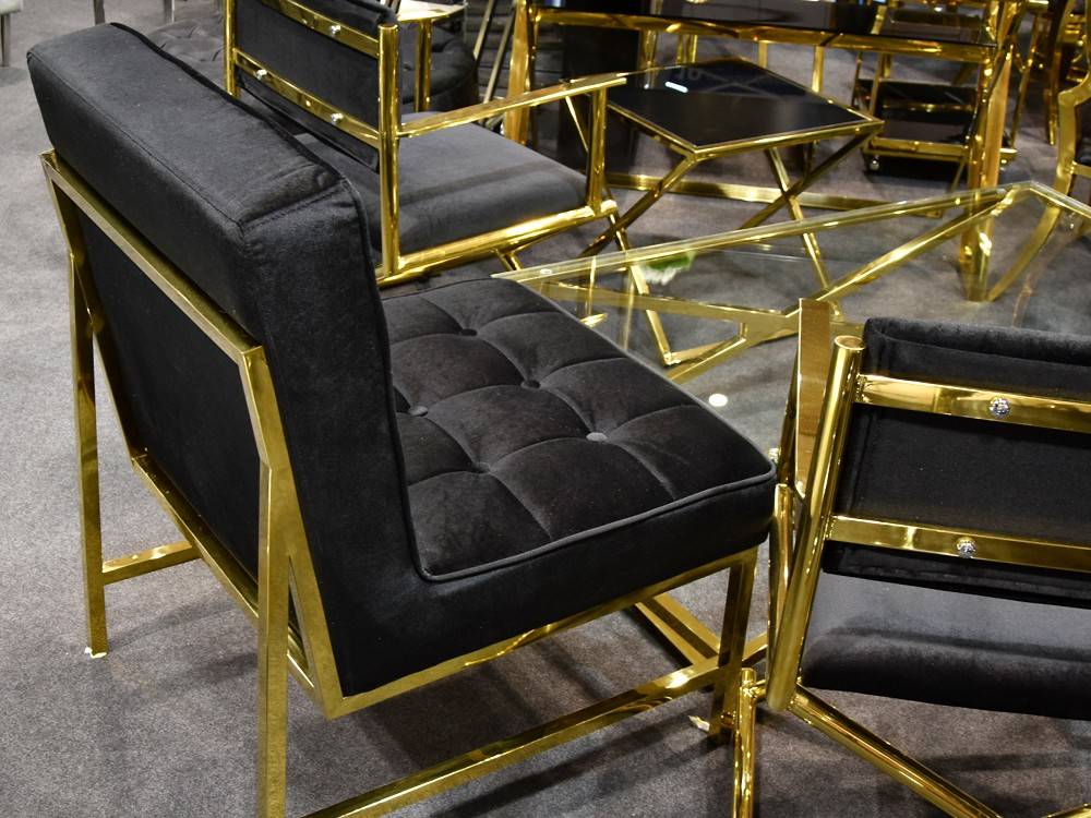 Elegáns velúr borítású fotel arany színű krómozott acél vázzal