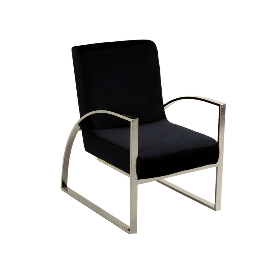 Elegáns velúr borítású fotel ezüst színű krómozott acél vázzal.