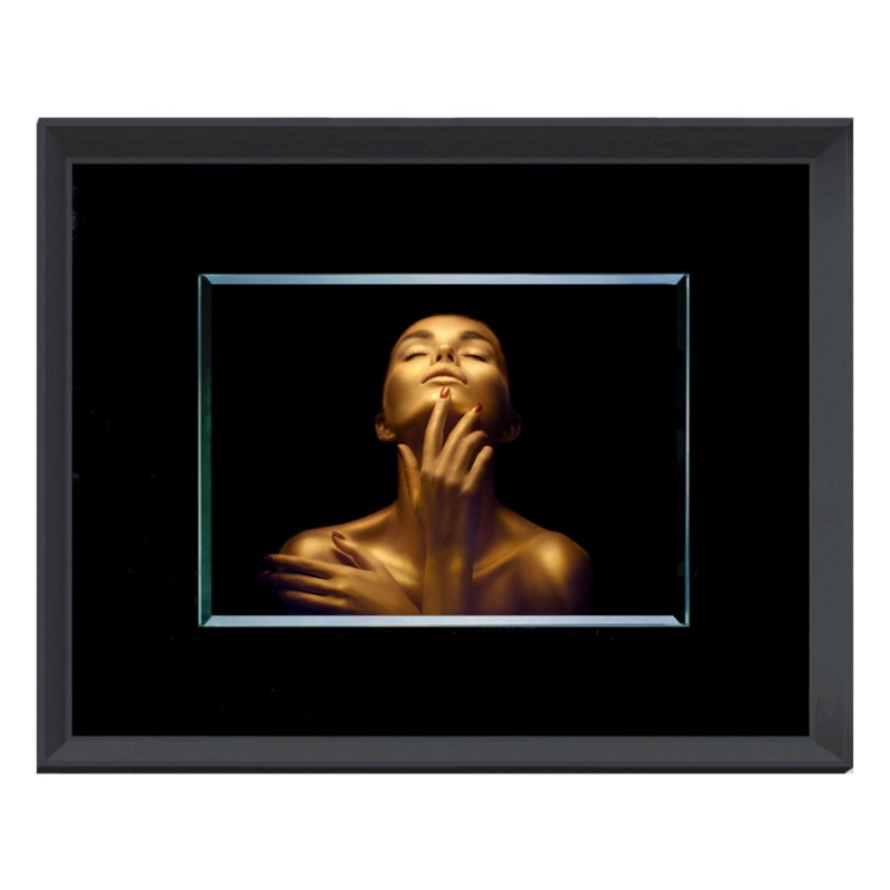 Elegáns, üveglapos fali kép fekete színű kerettel.