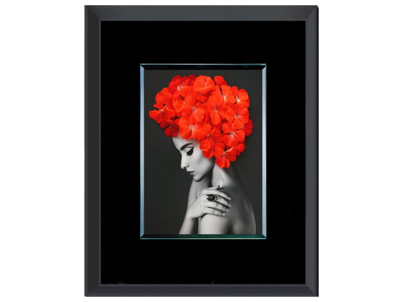 Elegáns, üveglapos fali kép fekete színű kerettel.