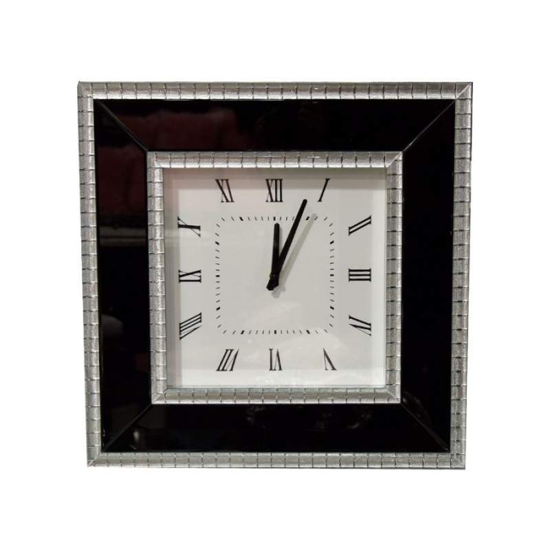 Elegáns, tükrös design falióra fekete színű üveggel.