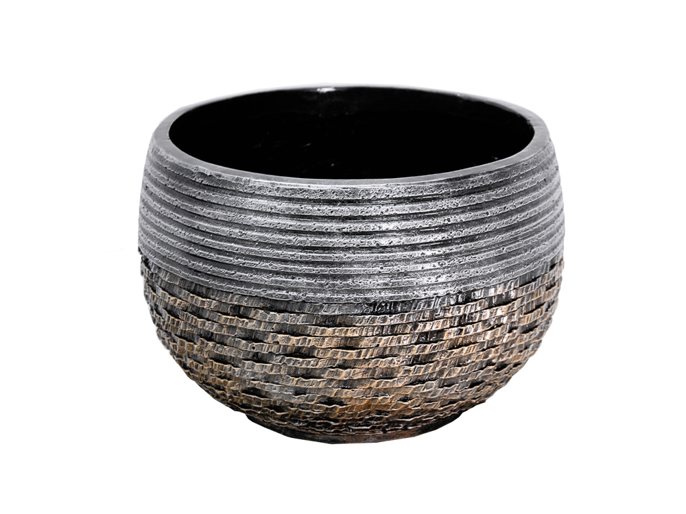 Elegáns, bronz színű design beltéri kaspó strukturált felülettel, kétféle méretben.