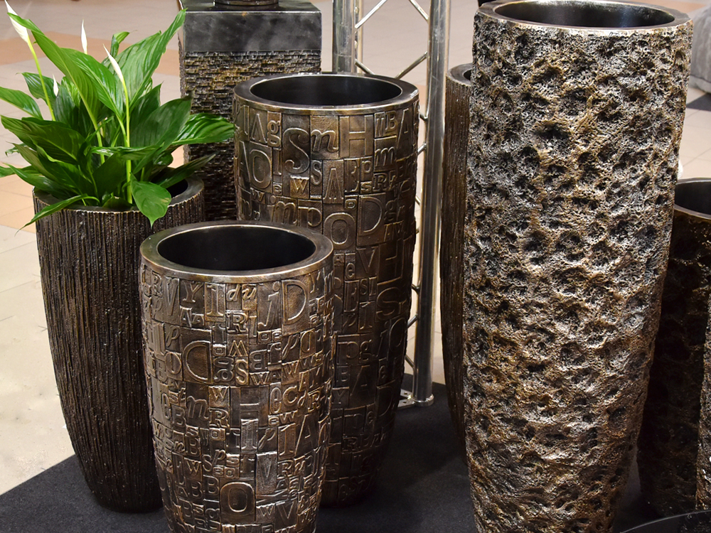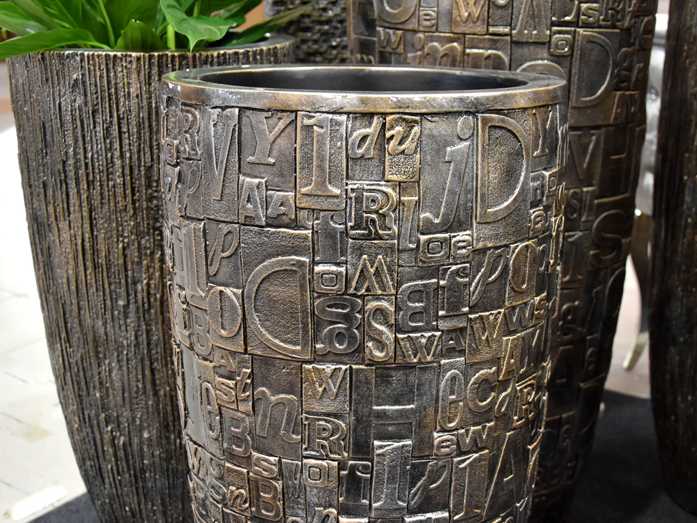 Elegáns design beltéri kaspó bronz betűs külső díszítéssel, kétféle méretben.