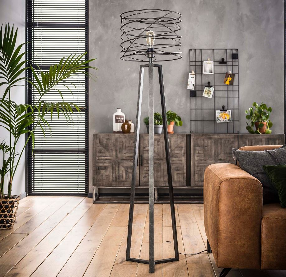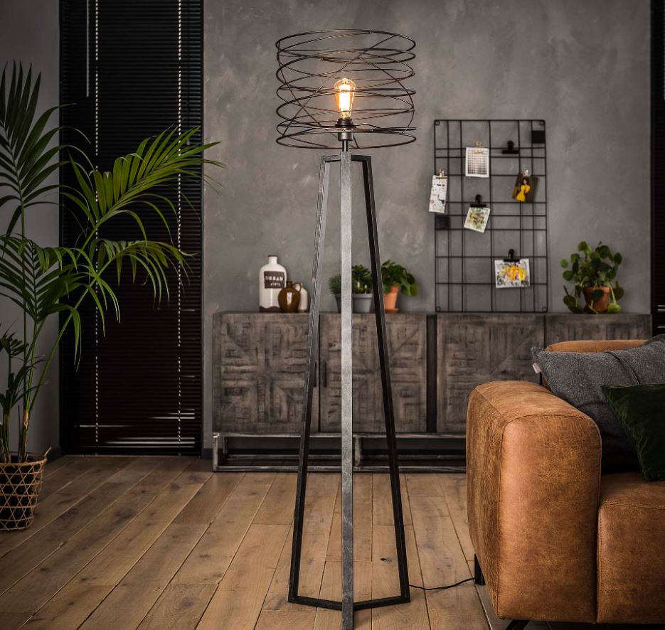 Design állólámpa feketeszén színű kivitelben, spirál formájú burával, izzó nélkül. A lámpához külön izzó is rendelhető.