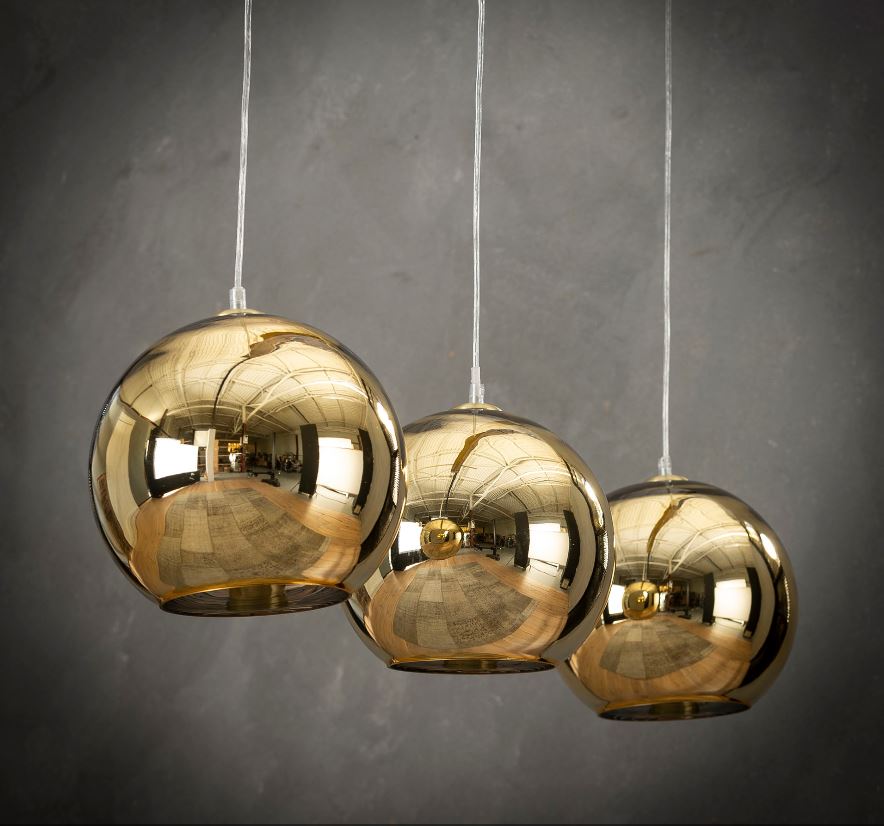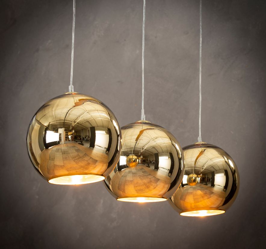 Elegáns design mennyezeti lámpa három darab, rozé- vagy aranyszínű üvegburával. A rögzítőpanel a burákkal azonos színben készül. Izzók nélkül. A lámpához külön izzók is rendelhetőek.