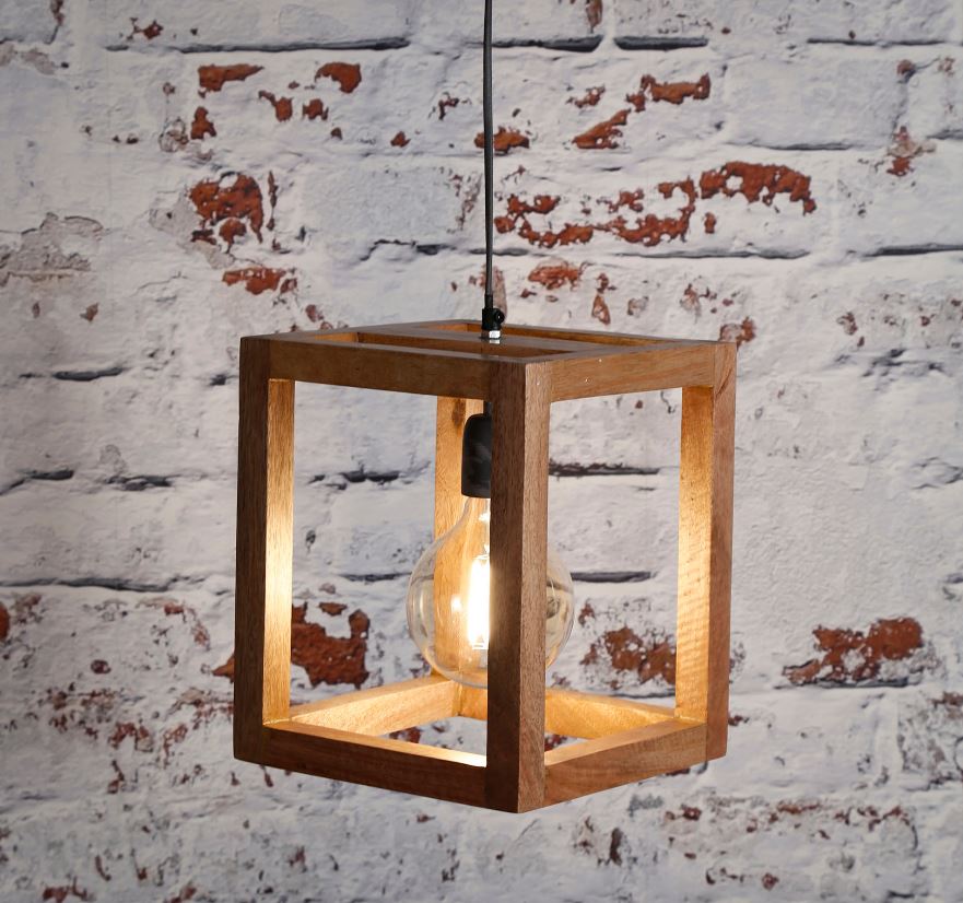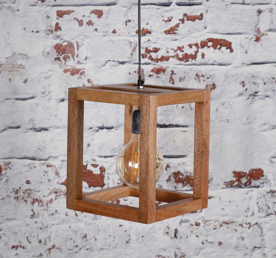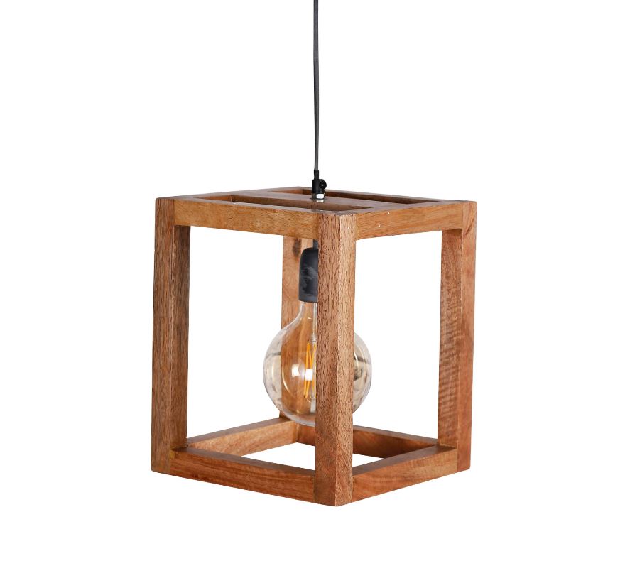 Design mennyezeti lámpa mangófából készült burával, izzó nélkül. A lámpához külön izzó is rendelhető.