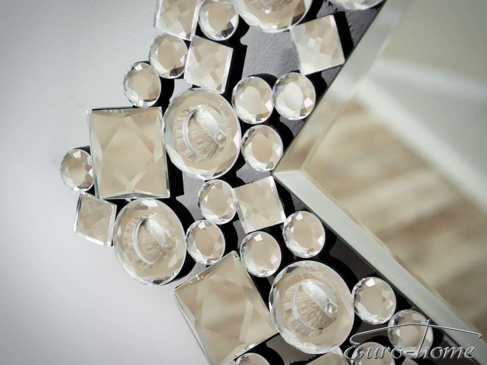 Design fali tükör apró kristály elemekkel díszített kerettel.