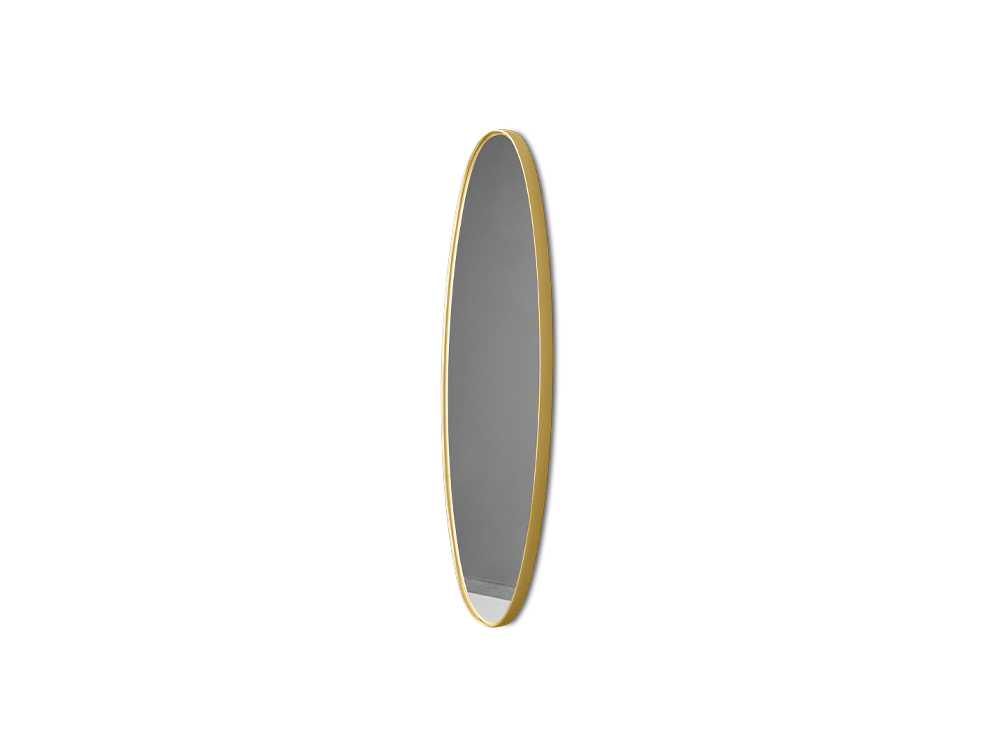 Elegáns, letisztult formavilágú ovális design tükör fekete, arany vagy ezüst színű kerettel, háromféle méretben.