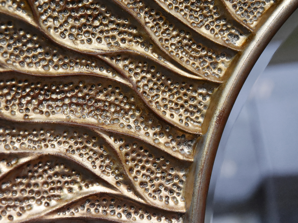 Elegáns design tükör lakkozott, pezsgő színű kerettel.