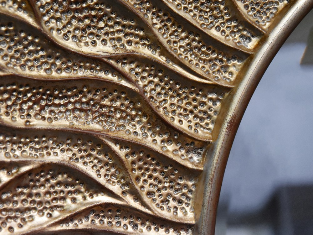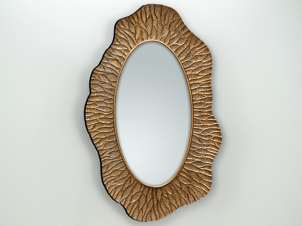 Elegáns design tükör lakkozott, pezsgő színű kerettel.