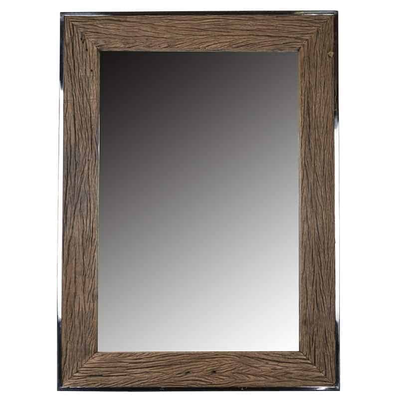 Elegáns tükör újrahasznosított fából készülő kerettel, fényes krómacél szegéllyel.