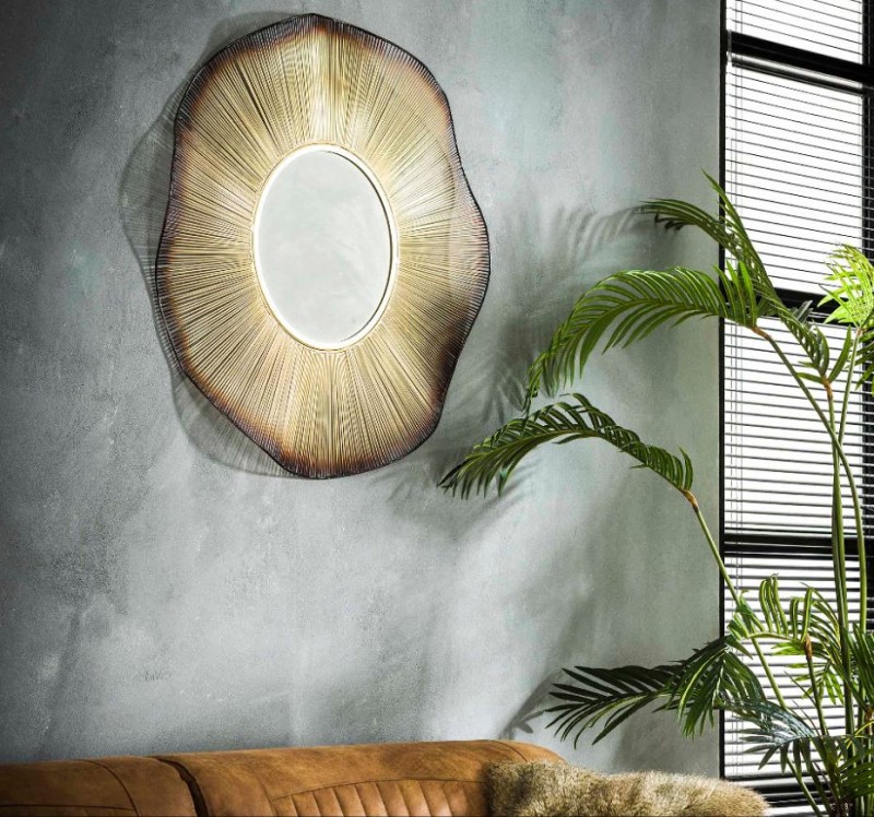 Elegáns design tükör fekete-arany színű fém kerettel. A tükör keret nélküli átmérője 35 cm.