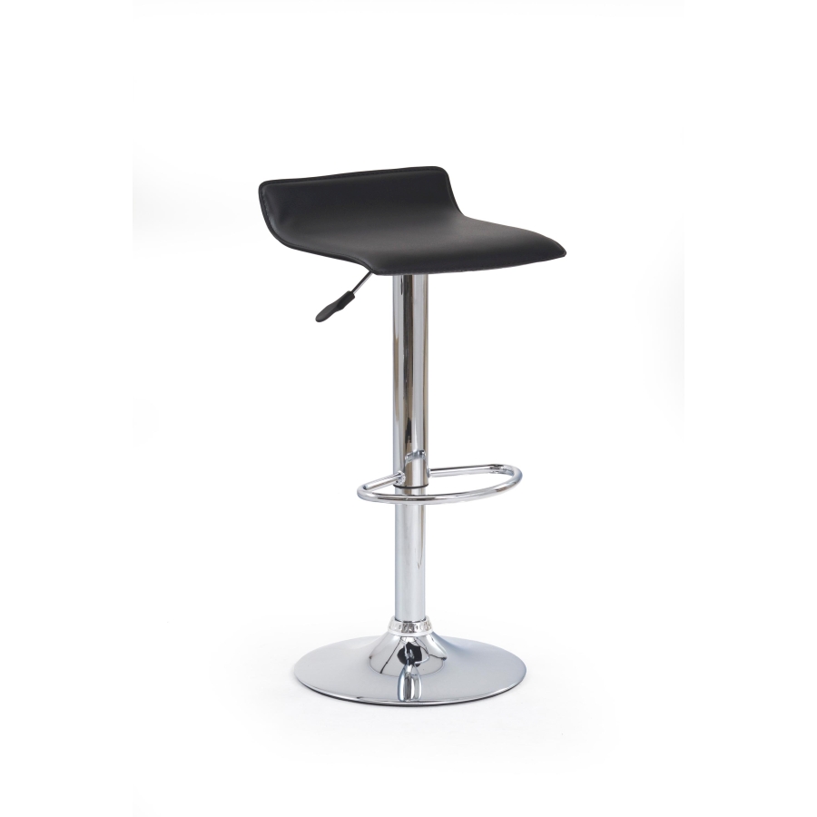 Állítható magasságú bárszék krómozott acél lábbal, strapabíró PVC ülőfelülettel, lábtartóval.