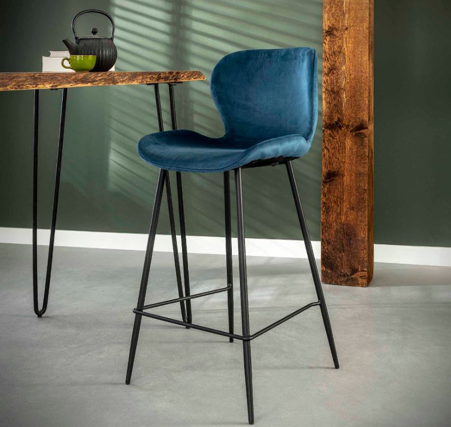 Modern bárszék trendi velvet szövet bevonattal, fekete színű porszórt acél lábakkal.