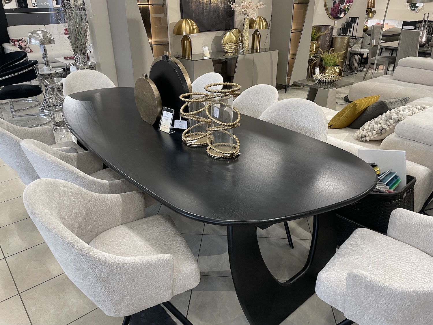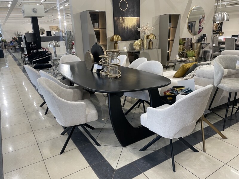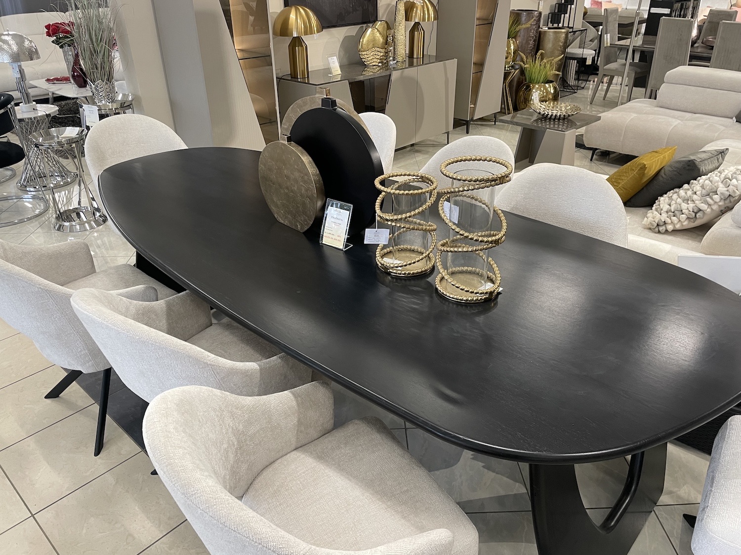 Prémium minőségű, stílusos, íves megjelenésű, tömörfa étkezőasztal.