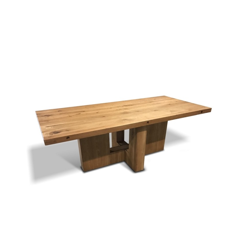 Asztallap anyaga: rusztikus jellegű tömör tölgyfa (természetes repedésekkel, görcsökkel)