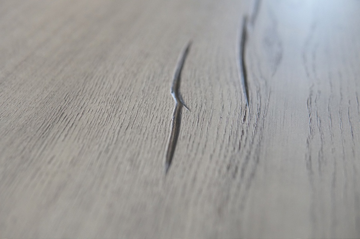 Asztallap anyaga: rusztikus jellegű tömör tölgyfa (természetes repedésekkel, görcsökkel)