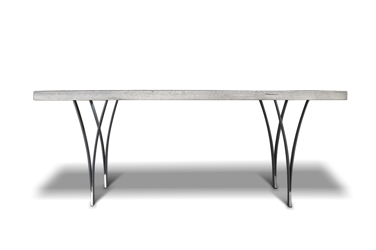 Byron tömör tölgyfa étkezőasztal nemesacél lábazattal.